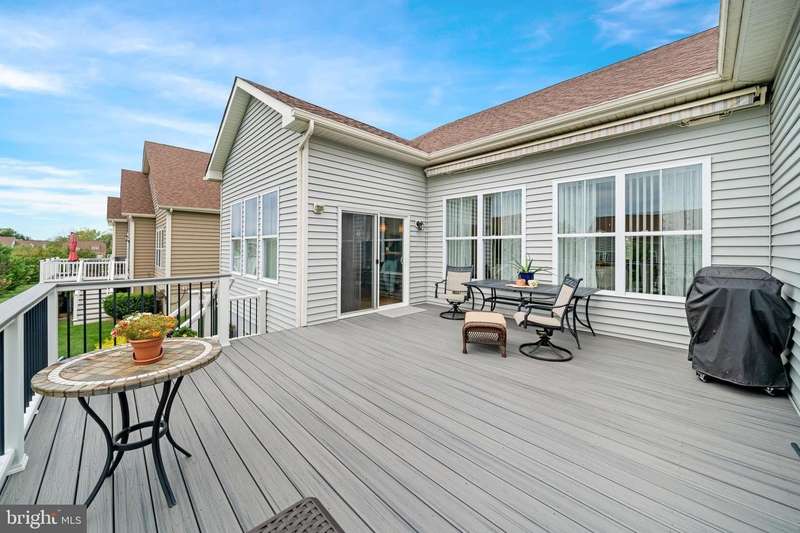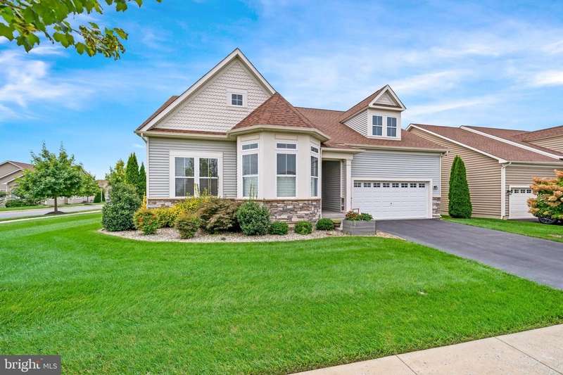 Enjoy the 55+ lifestyle now in The Village of Bayberry. Skip builder delays and construction mess-this sold-out neighborhood is ready today, not years away. Move into a meticulously maintained home filled with upgrades and natural light, offering model-level finishes and high-end upgrades throughout. You'll find 10-ft ceilings, crown molding, and hardwood floors in the main living areas. The great room with gas fireplace opens to a gourmet kitchen with granite counters, double wall ovens, gas cooktop, and an 8-ft island with seating. A large eat-in area flows to a Trex deck with retractable awning - perfect for entertaining or morning coffee. The home offers three bedrooms plus a bonus room for added flexibility - perfect as an office, den, library, or optional fourth bedroom. The primary suite features a 2-ft extension, walk-in closet, and direct deck access. Main-level laundry. Full unfinished basement with rough-in plumbing. Epoxy-floor garage with storage. Corner lot. Enjoy walking trails, open spaces, pool, clubhouse, and a vibrant social calendar - the lifestyle you want is here, ready and waiting for you.