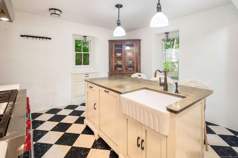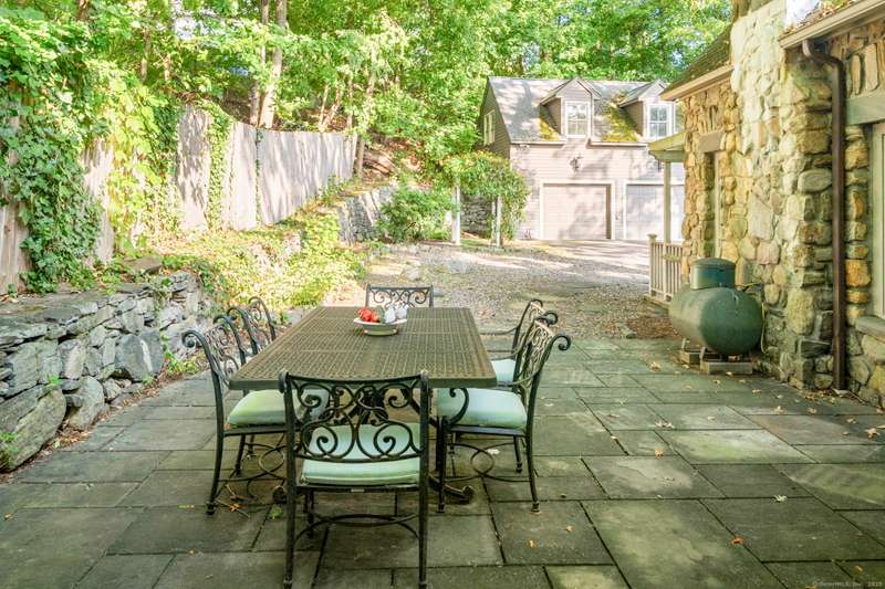 This enchanting stone home is on the market for the first time in 40 years. It is in the heart of downtown New Canaan presenting a rare opportunity to embrace a property rich in character. Nestled on nearly half an acre of meticulously landscaped grounds, this charming colonial offers a private and tranquil atmosphere just a short stroll from the vibrant town center. Over the years, certain areas of the home have been beautifully updated and maintained, while other areas may benefit from renovation. The home being sold ''as is'' spans 3,557 square feet across three levels, the generous first floor layout features a comfortably sized living and dining room filled with charm, leading to a well-equipped open-concept kitchen and a spacious family room with glass doors that open onto secluded patio areas. A first-floor full bath completes the main level. The second floor hosts the primary suite with a full bathroom, two additional bedrooms, and another full bath. The third floor can be util