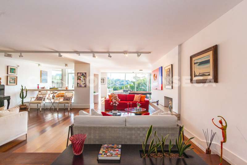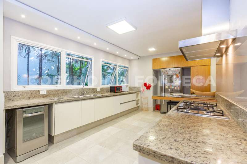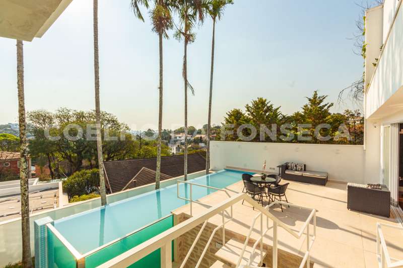 Magnífica residência no melhor do Jardim Guedala, living com cinco ambientes integrados, sala de jantar com adega, sala de ginástica com vista panoâmica, assim como a varanda gourmet, sala de jantar com adega, copa e cozinha, piscina com deck, iluminação naural devido as amplas janelas, cercada por belos e bem cuidados jardins, quatro amplas suítes e quatro vagas de garagem que completam 890 m² de área construída.