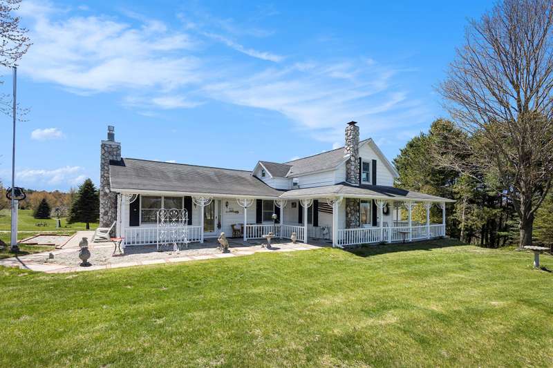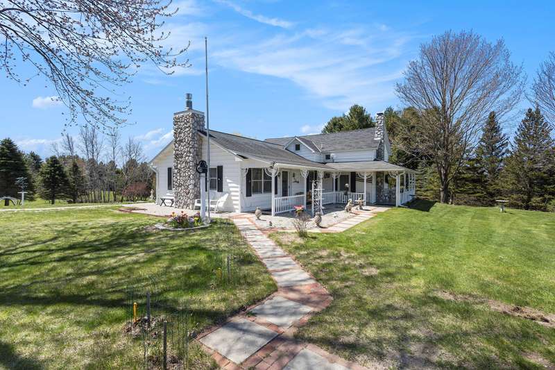 This remarkable home and property offers stunning and peaceful views that can only be fully appreciated with an in-person visit. Situated on 25 beautiful acres of rolling land filled with landscaped woods and spaces ideal for farming and gardening, this unique residence is perfect for outdoor enthusiasts, featuring a shooting range and hunting blinds. The home offers nearly 2,300 square feet of tastefully remodeled living space. The kitchen showcases elegant cabinets and quartz countertops, with updated bathrooms and mostly hardwood flooring throughout. The living room includes a newer gas fireplace, while the family room features an efficient wood-burning stove. Enjoy the outdoors on a charming 12 by 40-foot deck, a second-floor balcony, and a spacious patio with a reinforced concrete slab. Additional highlights include a whole house generator, an en-suite master bedroom with a walk-in bathtub, a large garage, and a versatile pole barn. The property also features various plants, including raspberry bushes and apple trees, making it a wonderful opportunity for families or potential development. A serene pond is onsite, and Grace Road Beach on Lake Michigan is conveniently located just 2.5 miles away. The best way to appreciate everything this property has to offer is to visit and explore.