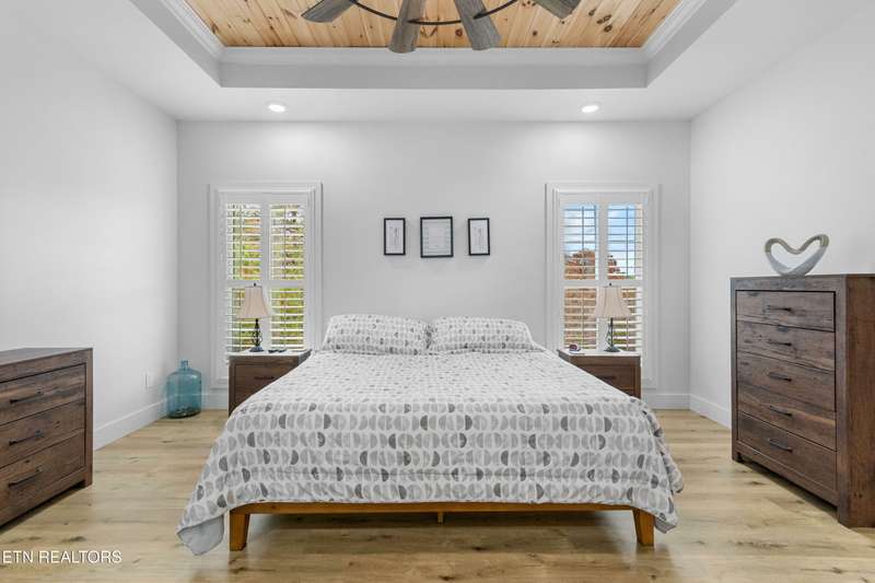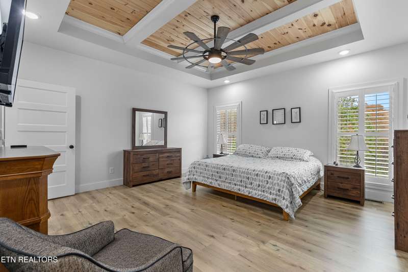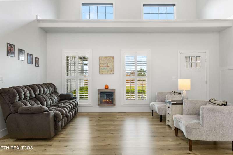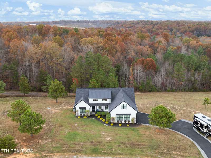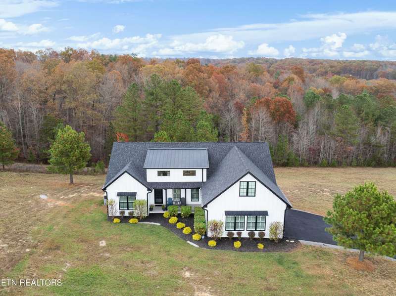 Contemporary black and white 3 year old home with 3 spacious bedrooms, 2 bathrooms, utility/laundry room, open concept living room and kitchen, constructed in 2022 and just under 2 acres, gated equestrian community. Large flex space over garage for a 4th bedroom/office/play/bunk room or movie room. Plantation blinds throughout, wireless electric blinds on the 2nd story dormer windows, 8x10 deck addition for hot tub deck, and some amazing sunsets. Incapsulated crawl space, all underground downspouts from gutters. Spacious 2 car garage with Connecticut electric emergency generator, 10 pole transfer switch along with landscaping of rock, stone, edging and mulch. The best feature of this property is its quiet views of the Cumberland Plateau and some beautiful sunrises and sunsets. Schedule your showing today!