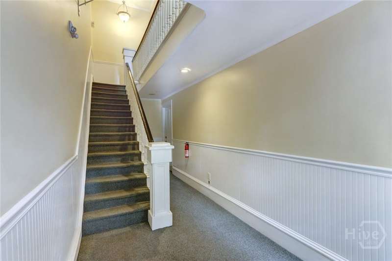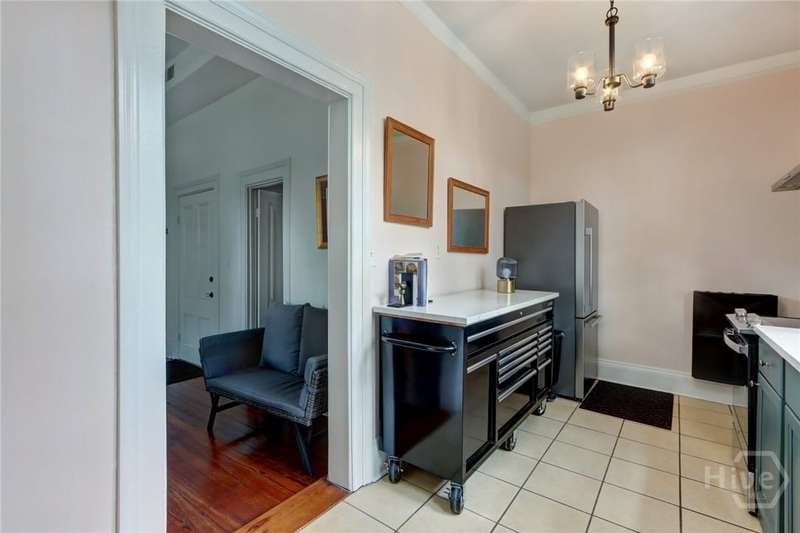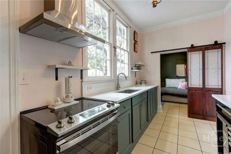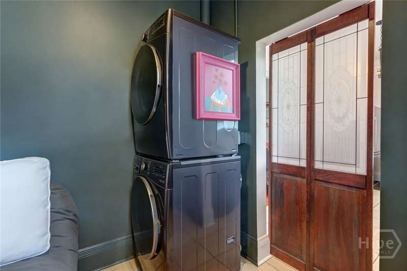 Awesome Condo at Forsyth Park with STVR license. Buyer is eligible to apply for at closing! An Immaculate one-bedroom condo in a historic 6-unit building in a highly sought-after area at the southern end of Forsyth Park. New quartz countertops have been added to the kitchen and was recently equipped with newer appliances. The bath is gorgeous with updated appointments. This spacious condo features 12-foot ceilings, working pocket doors, hardwood floors, and two original fireplaces with decorative mantles. The condo has a spacious bedroom with abundant natural light, and pocket windows that open to a front facing balcony with wrought iron railing. A large laundry/flex room is located off the kitchen with resting area and desk space. Front and rear access include a small rear deck in a nice shady area. Forsyth Park is only a few steps away. Enjoy nearby restaurants, the Park, Farmers Market, tennis, grocery store and more.