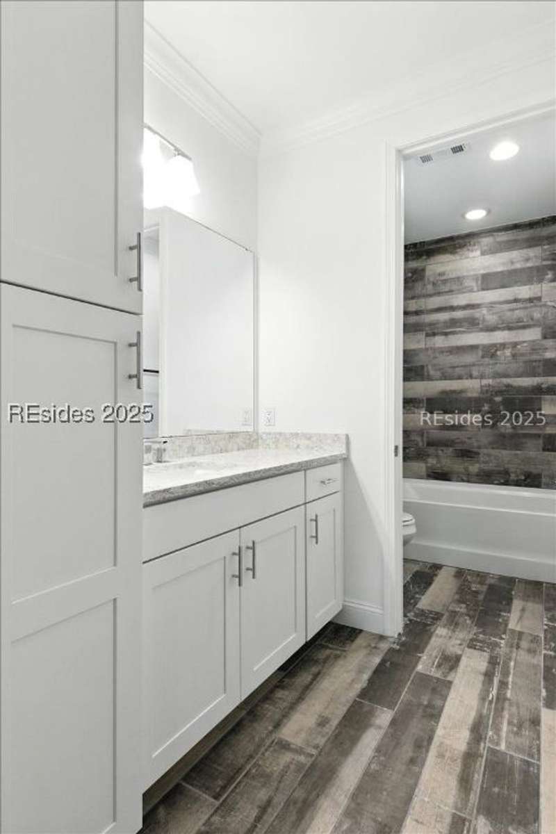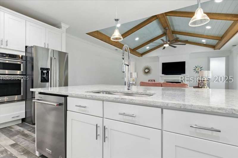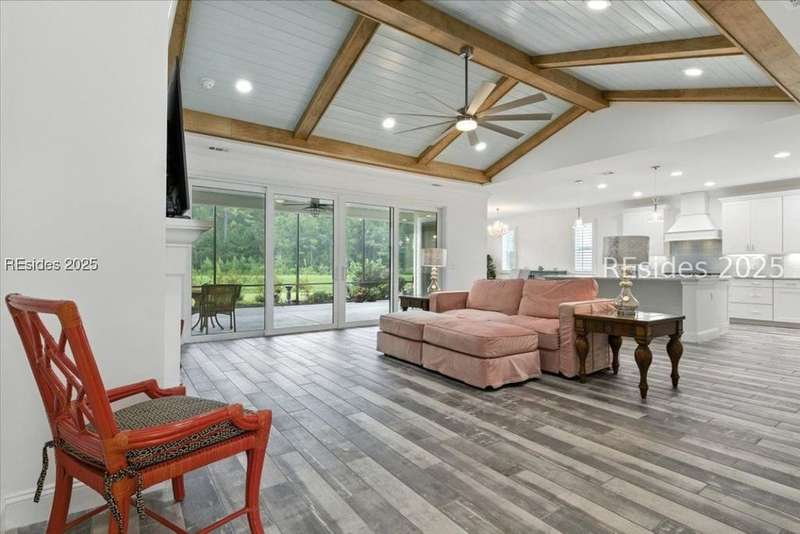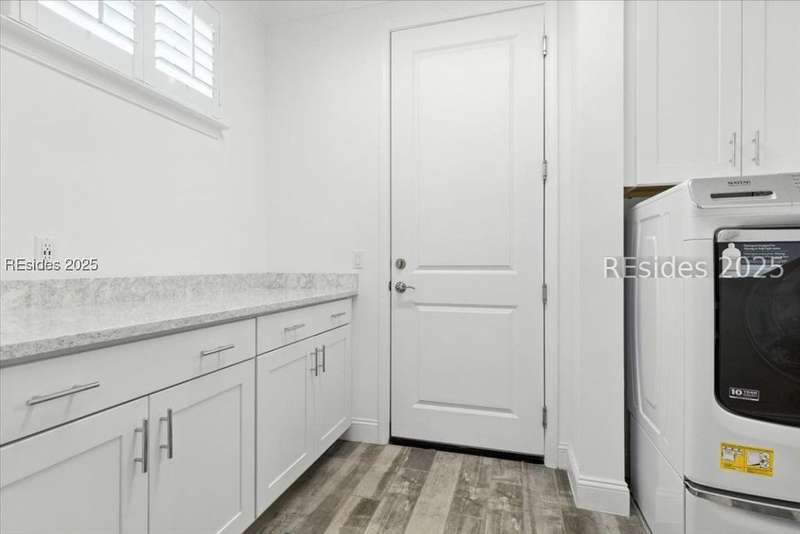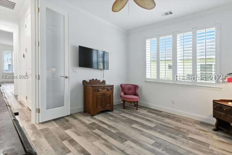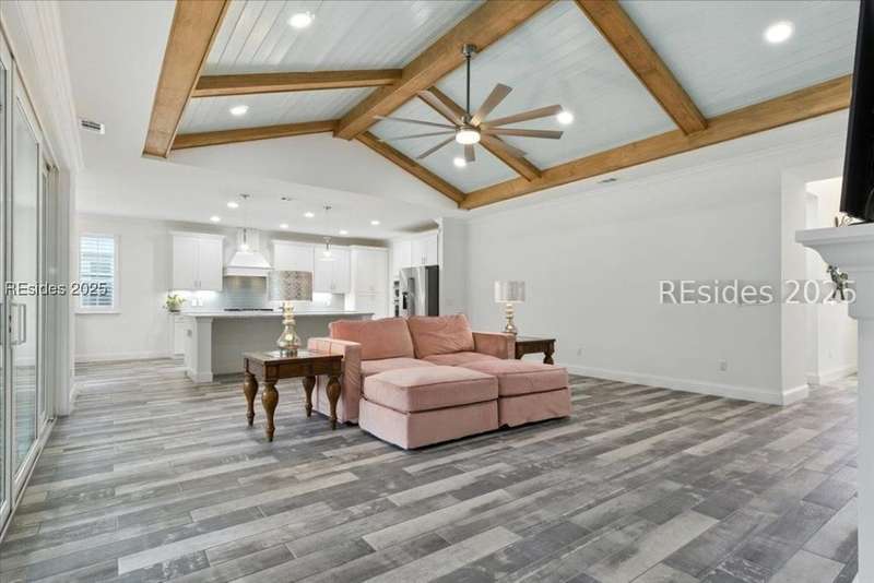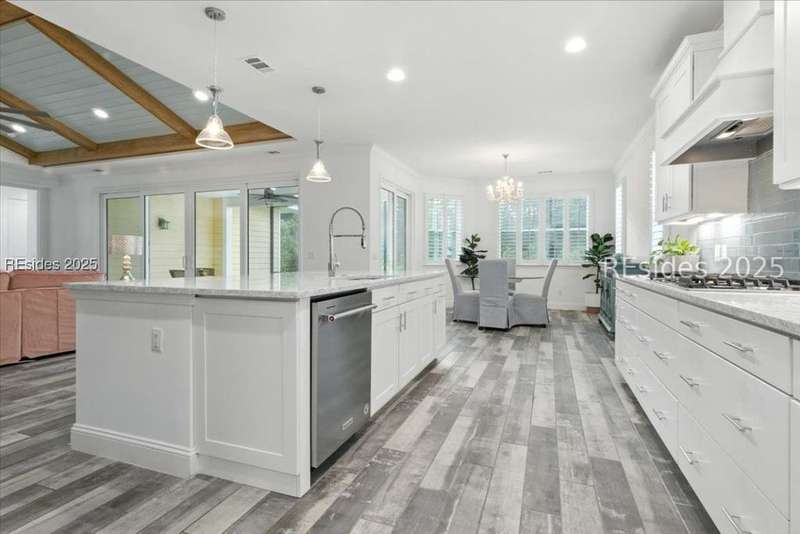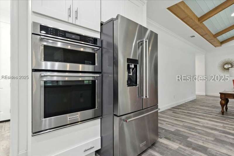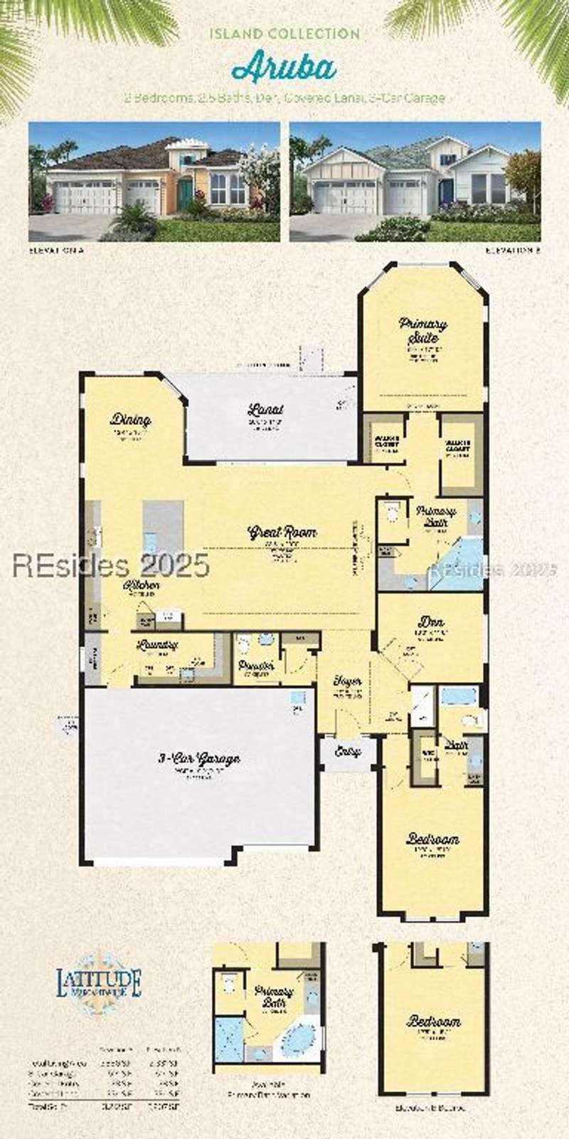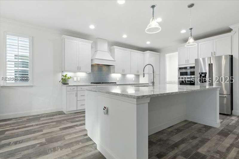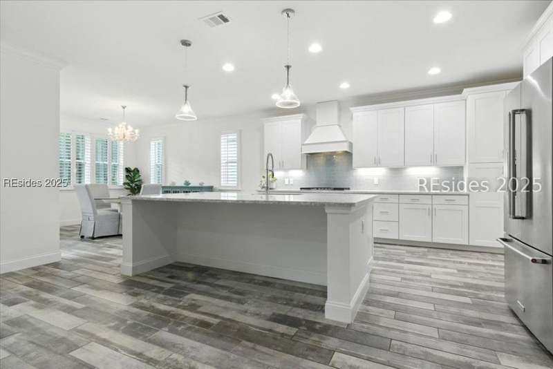 STOP THE CAR... this one checks all the boxes! WOW... Margaritaville Aruba "Island Home" - 3 car garage on a premier street with serene lagoon & preserve views. A no compromises property! Options, features, & upgrades galore! Plank tile flooring, quartz, white cabinets, 8' doors & 42" upgraded Shaker cabinets, drawers/ pull outs, Natural gas KitchenAid appliances, gas fireplace, crown molding, plantation shutters, beamed ceiling with tongue & groove millwork, birdcage, enhanced landscaping, epoxy and attic in garage, luxe shower package with rain head and spray bar. Pedestal washer/ dryer, and refrigerator included. Water filtration system."