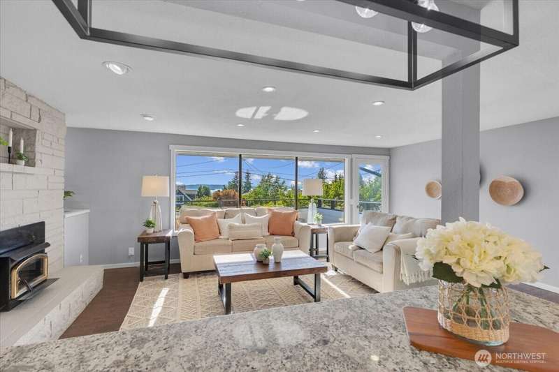 Edmonds Bowl living at its best! Enjoy stunning views of the Sound, Olympics and Whidbey from this gorgeous 3 bedroom + den home on a quiet street. Savor magical sunsets, ferries passing by and the smell of salt water from the West-facing Trex entertainment deck. Bright, open kitchen with large island and pantry. Open concept living and dining rooms. French doors open to the covered back patio. Large primary suite features a full bath & 2 closets. 2nd bed and full bath complete the main. Daylight lower level with family room, 1 bedroom, 3/4 bath, laundry & home office. MIL apartment potential? Gardener's oasis with ample planting areas. New roof, paint & carpet. A/C & gas heat. Blocks to vibrant downtown Edmonds, restaurants and arts scene.