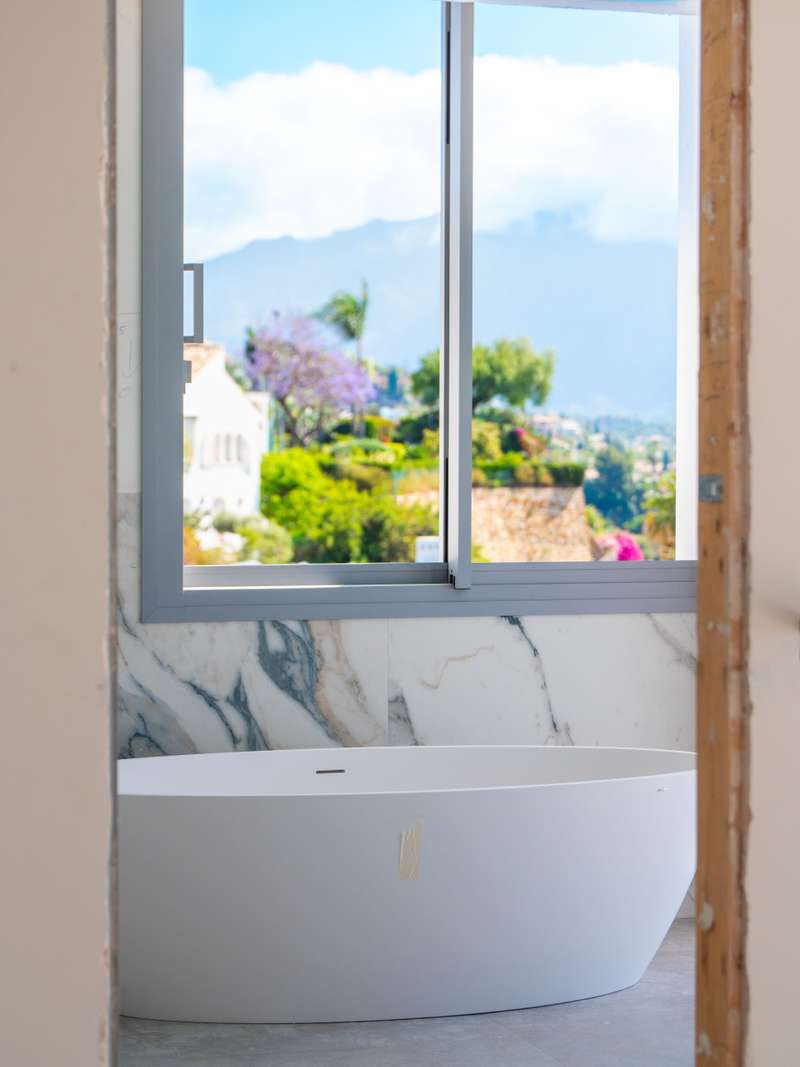 Introducing a brand-new luxury villa in the exclusive gated community of Puerto del Capitán, Benahavís — a masterpiece of design and comfort, ready for delivery in August 2025. Elevated high above the coast, this remarkable 5-bedroom, 7-bathroom residence offers uninterrupted panoramic views of the Mediterranean Sea and surrounding mountains, ensuring complete privacy and a breathtaking natural backdrop from every level. With a south and south-east orientation, the villa is bathed in sunlight throughout the day. The main living area features an impressive high ceiling, creating a sense of openness and elegance, while large sliding glass doors seamlessly connect the interior with expansive terraces and a private infinity pool — the perfect setting to enjoy the unmatched views and serene surroundings. Crafted for modern living, the villa also includes a dedicated wine cellar and a laundry room, combining luxury with everyday practicality. The home comes with two private parking spaces