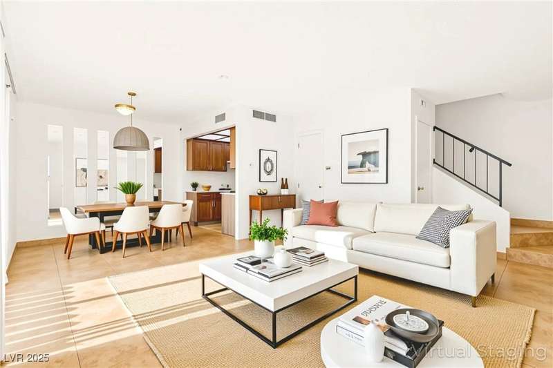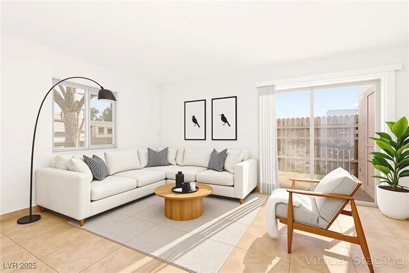 Welcome to this charming townhome nestled in the desirable community of Tropicana Villas!! This charming 2-bedroom, 1.5-bath home offers an inviting open floor plan with plenty of natural light. This well-maintained home features a spacious layout with tile flooring throughout the main level, a bright living room, and a private patio perfect for outdoor enjoyment. Upstairs offers two generous bedrooms with ample closet space. Conveniently located near shopping, dining, and freeway access—this is a fantastic opportunity to own in a great location with room to make it your own!