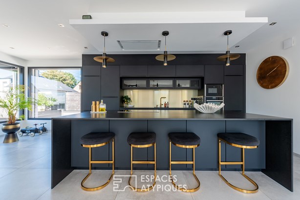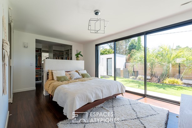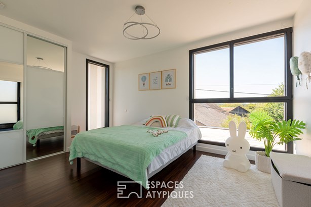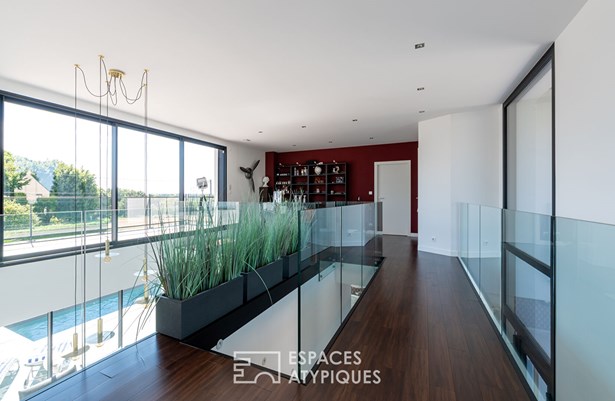 Just ten minutes from the outskirts of Rennes, this 252 sqm contemporary villa located in the town of Melesse boasts elegant, designer architecture on a 600 sqm plot. Inspired by the Californian style, it combines clean lines, beautiful volumes, and large glass openings.