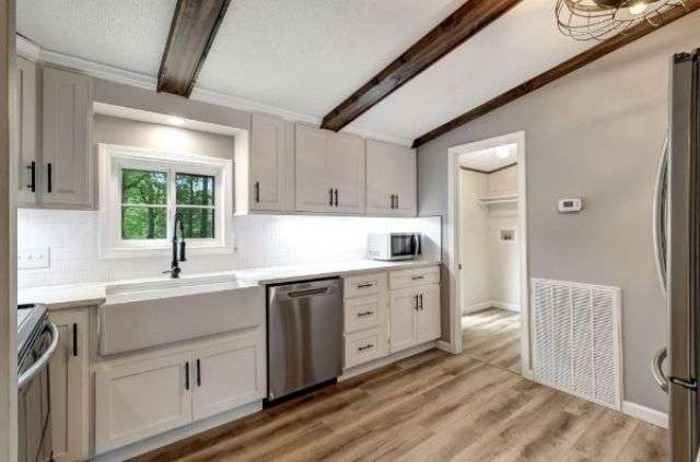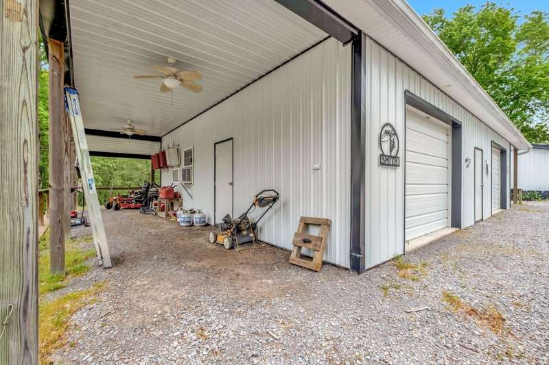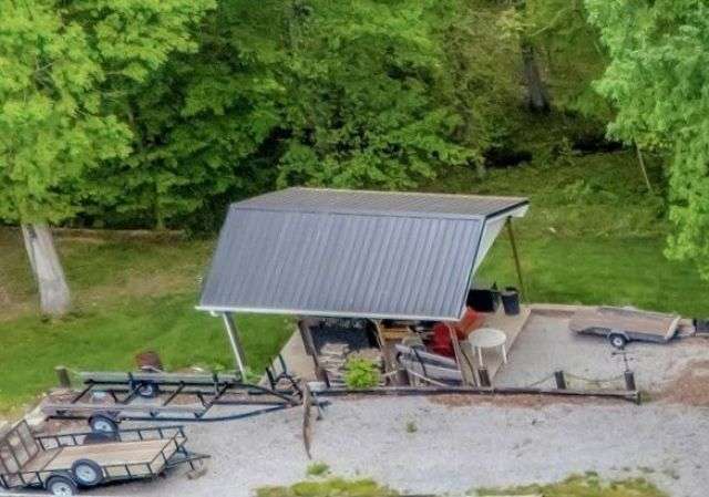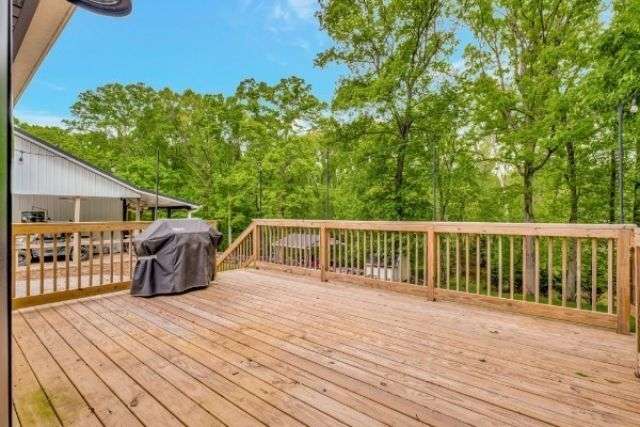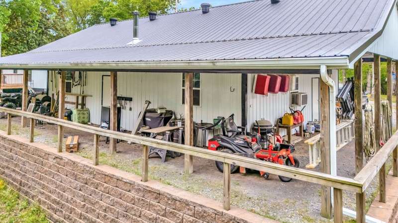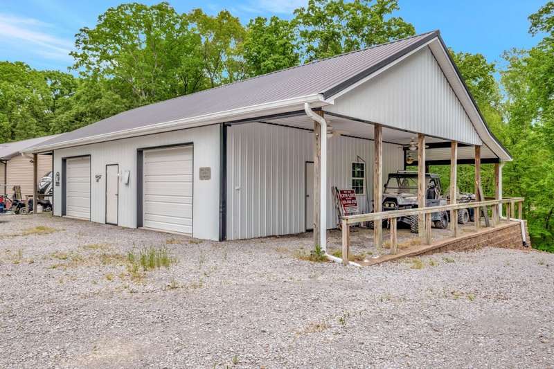 Real Gem less than 800ft. from KENTUCKY LAKE less than a mile to Piriate's Cove Marina, approx. 10 minutes to Fat Daddy's and 15 minutes to Paris Landing State Park & Golf resort. The house sits on 2 lots with 2 septic tanks with a huge 40x60 HEATED detached 2 car garage that has a kitchen and bath that could easily make a nice Barndominium. The house has been totally remodeled sitting on a beautiful PRIVATE lot that has HIGH SPEED INTERNET thru CEMC. New roof in 2017, New HVAC 2018, New Windows & Doors, Gutter Guards, all new Lighting, Cabinets, Beautiful light Oak LVP thru-out ( No carpet ), Tile floors in both baths. Vaulted ceilings with WOOD BEAMS in living room, kitchen & dining room. Gorgeous kitchen with Calcutta Quartz counters, TILE backsplash, UNDER cabinet and in-cabinet lighting, SS appliances, FARM SINK, and a Custom Vented Hood over the stove. Walk-in closets in all bedrooms. The primary suite is spacious with a Spa-like bath offering TILE floors, a huge TILED shower with Bench seating and backlighting, custom cabinets with a FARM SINK, QUARTZ counters, BLUETOOTH lighting and a linen closet. Relax in a beautiful CLAW FOOT CAST IRON tub with a custom designed TILE wall surround and Tile floors in the hall bath. Great outdoor living space on both of the 12x 30 front and back decks plus a 20x20 concrete Pavilion. The Garage has an 8 & 10 overhang on 3 sides for additional parking, store your boat, Jet Ski's, ATVS, Mower, Etc. The Sellers have a boat lift and boat at Pirates Cove that they willing to negotiate with property. Additional adjoining lot available with Septic Tank listed separately MLS # 3001031