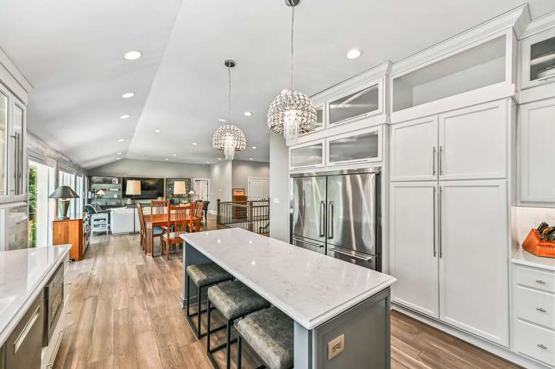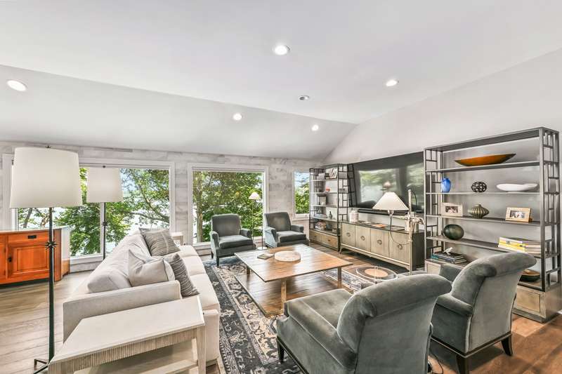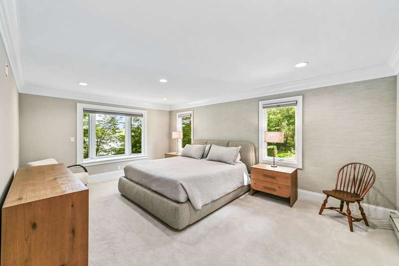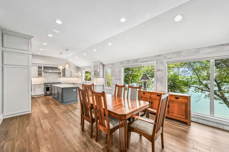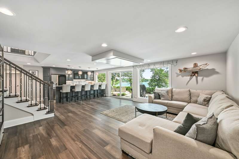 Fully renovated in 2022, this luxurious four bedroom, four and a half bathroom, lakefront residence offers over 3,400 sq ft of beautiful living space on coveted Upper Nashotah Lake. Set on a private .84-acre lot with 250' of pristine frontage, the home showcases elevated design, a bright open floor plan, and sweeping lake views throughout. The chef's kitchen features Fisher and Paykel appliances, quartz counters, and a spacious island. The main level includes a serene primary suite and guest bedroom, while the walkout lower level offers a full bar, second entertaining space, and two additional lake-facing bedrooms. Enjoy the fenced yard, stamped concrete patio, luxury gas fire pit, and permanent Summerset dock and lift for effortless lake living.