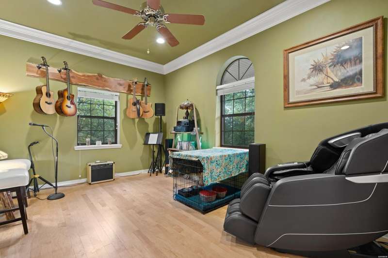 Welcome to this charming 4-bedroom, 3-bath home nestled on 4 parklike acres, just one mile from Lakeside School. Blending elegance, comfort, and convenience, this property offers the perfect retreat while remaining close to everything you need. Inside, you'll find a spacious and inviting floor plan filled with natural light and beautiful hardwood floors. The living room flows seamlessly into the dining area and gourmet kitchen, making it ideal for family living and entertaining. The chef's kitchen features granite countertops, custom cabinetry, and plenty of workspace. Built-ins throughout the home provide both style and functionality with ample storage. The primary suite offers a relaxing escape with its en-suite bathroom, complete with a soaking tub and separate shower. Three additional bedrooms and two more full bathrooms ensure space and comfort for family and guests alike. Step outside to enjoy the picturesque grounds, with mature trees and lush landscaping creating a private, park-like setting. A 2-car garage plus an additional workshop/garage provide excellent space for extra vehicles, hobbies, or storage, with even more storage available in the floored area above the garage. Perfectly located minutes from shopping, dining, and recreation, this home offers a rare combination of tranquility and convenience.