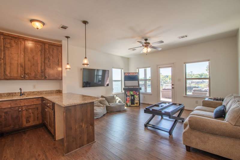 Priced below Henderson County tax appraised value! Situated on a protected cove with scenic open-water views, this home includes a boat slip in the floating community marina with HydroHoist lift plus two personal watercraft pods. Yard maintenance is included, allowing you to enjoy lake living while someone else handles the upkeep.Harbor Light Villas is a one-of-a-kind gated community on Cedar Creek Lake, featuring a saltwater pool with cabana, quarter-mile of lighted waterfront walkways, and a landscaped courtyard with pavilion. Conveniently located in Gun Barrel City, youre just minutes from restaurants and shopping.Inside, tall windows highlight the lake views and bring natural light into the open-concept living area. The kitchen and living spaces feature wood shaker-style cabinetry and trim, along with a convenient half bath on the main level. The primary suite includes a private balcony and an ensuite bath with double sinks, soaking tub, and separate shower. An elevator provides access to the second floor, which offers a second living area with wet bar and balcony access. Updates include a new extended balcony deck and new upstairs AC (2023). Appliancesrefrigerator, washer, and dryerare also included.Additional features include a two-car garage and community amenities designed for low-maintenance living. Boat available separately.