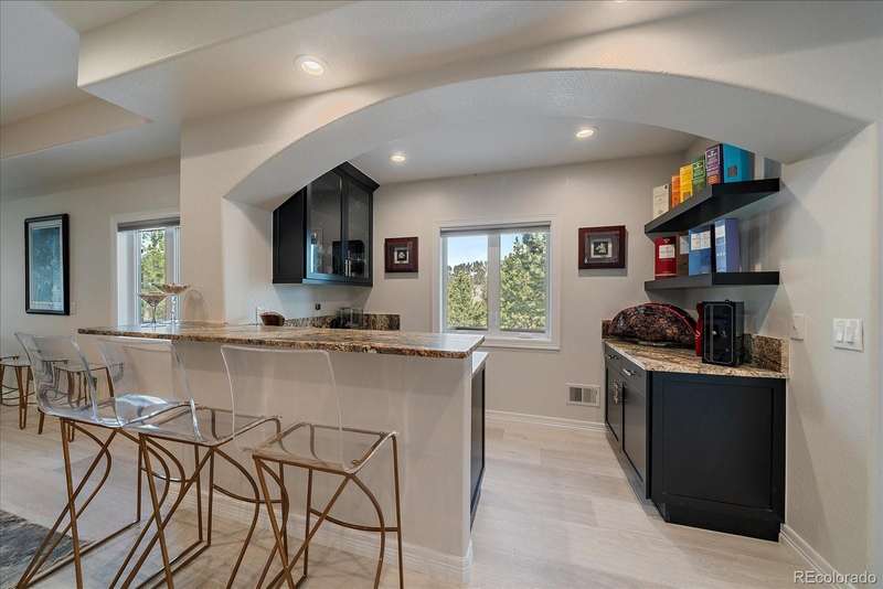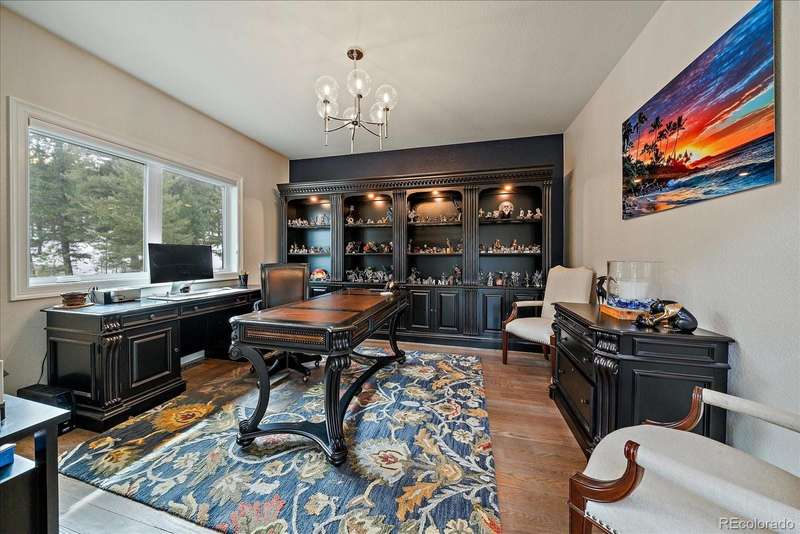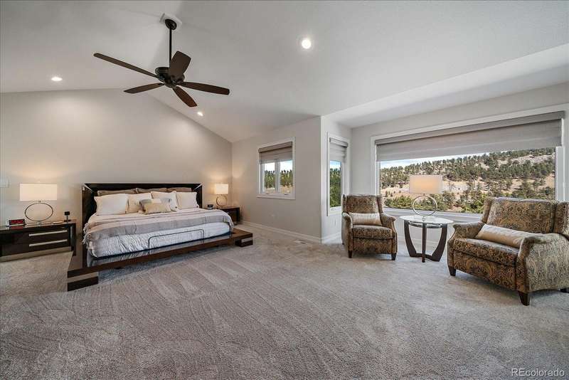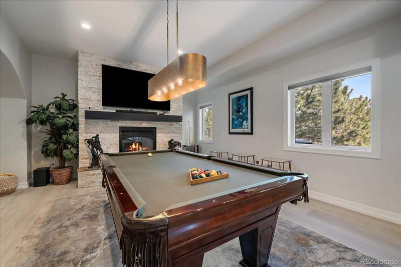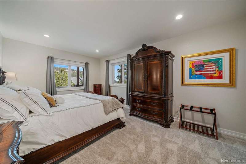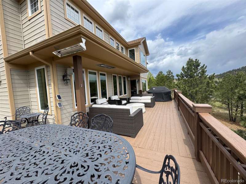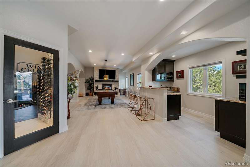 Luxury Mountain Living Your Evergreen Escape Awaits. The perfect blend of timeless luxury, modern comfort, and natural serenity, this breathtaking five-bedroom, five-bathroom home in the foothills offers it all. Nestled among the trees on a peaceful cul-de-sac yet conveniently located near essential amenities, this home is a true sanctuary. From the moment you enter, the attention to detail is clear with gleaming hardwood floors, soaring ceilings, and a stunning great room anchored by a two-story stone fireplace set the tone for relaxed elegance. The heart of the home is its gourmet chefs kitchen, featuring Thermador appliances, a six-burner range, wall oven, beverage cooler, ice maker, and warming drawer. A spacious island, walk-in pantry, and butlers pantry make this kitchen ideal for cooking, hosting, and everyday life. Outdoor living is just as refined, with a large entertaining deck equipped with built-in heaters and expansive views. Inside, the primary suite is a luxurious retreat complete with a sitting area, a spa-inspired remodeled bathroom, and a walk-in closet. A second guest bedroom has been thoughtfully converted into an additional dressing room, ideal for the fashion enthusiast. Upstairs, a cozy loft offers the perfect reading nook, while the fully finished lower level is an entertainers dream complete with a home theater, bar, pool table, wine closet, and a guest suite. Bonus spaces include a home gym or game area, as well as a private patio with a dog run. Additional upgrades include newer A/C units, furnaces with humidifiers, water heaters, and energy-efficient windows. The oversized three-car garage provides ample storage for vehicles and gear. This property is a wonderful find, offering cozy winter evenings, sunny summer days, starry skies and deer sightings. Bergen Park shops and restaurants are close by. Roughly 30 min to Denver, 37 min to Tech Center, and 16 min to the delightful village of Evergreen. Sellers have already relocated.
