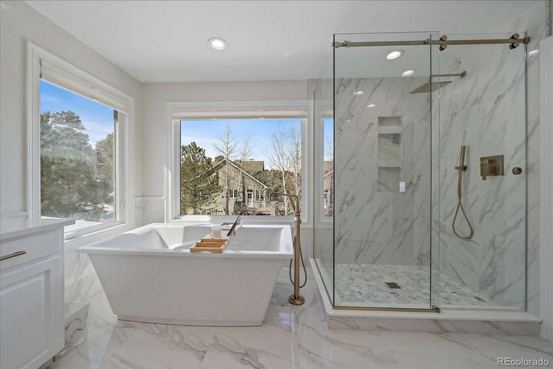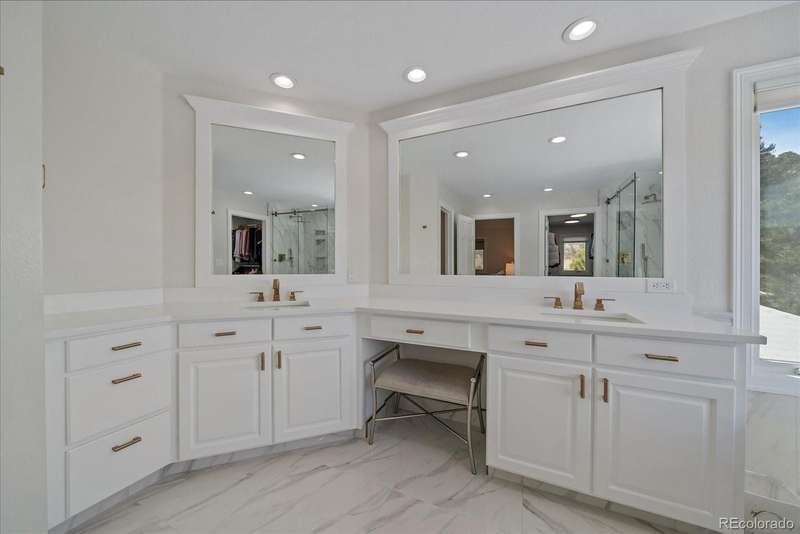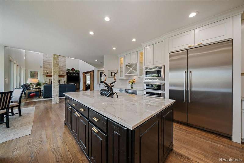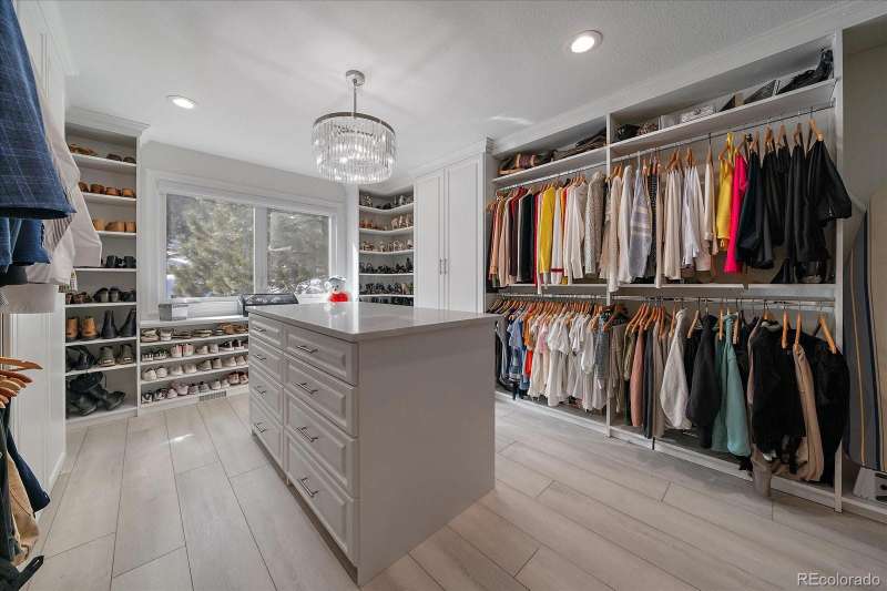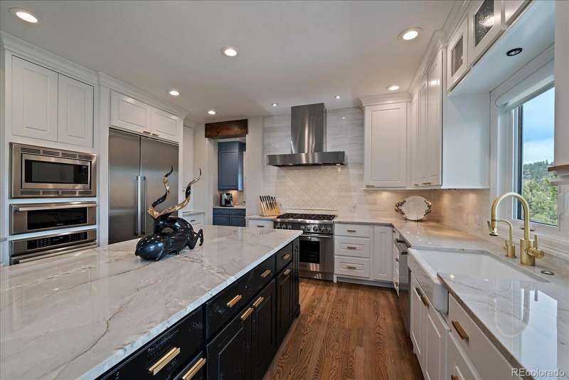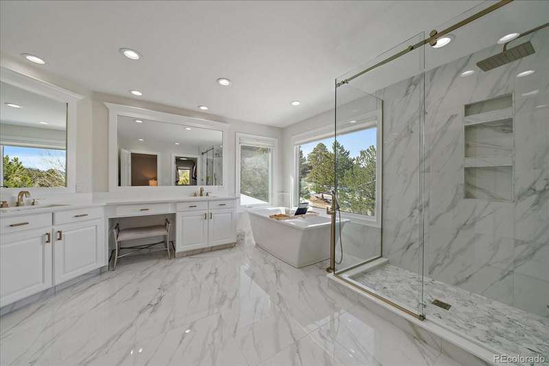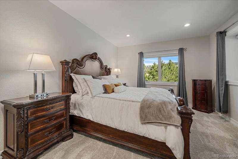 Luxury Mountain Living Your Evergreen Escape Awaits. The perfect blend of timeless luxury, modern comfort, and natural serenity, this breathtaking five-bedroom, five-bathroom home in the foothills offers it all. Nestled among the trees on a peaceful cul-de-sac yet conveniently located near essential amenities, this home is a true sanctuary. From the moment you enter, the attention to detail is clear with gleaming hardwood floors, soaring ceilings, and a stunning great room anchored by a two-story stone fireplace set the tone for relaxed elegance. The heart of the home is its gourmet chefs kitchen, featuring Thermador appliances, a six-burner range, wall oven, beverage cooler, ice maker, and warming drawer. A spacious island, walk-in pantry, and butlers pantry make this kitchen ideal for cooking, hosting, and everyday life. Outdoor living is just as refined, with a large entertaining deck equipped with built-in heaters and expansive views. Inside, the primary suite is a luxurious retreat complete with a sitting area, a spa-inspired remodeled bathroom, and a walk-in closet. A second guest bedroom has been thoughtfully converted into an additional dressing room, ideal for the fashion enthusiast. Upstairs, a cozy loft offers the perfect reading nook, while the fully finished lower level is an entertainers dream complete with a home theater, bar, pool table, wine closet, and a guest suite. Bonus spaces include a home gym or game area, as well as a private patio with a dog run. Additional upgrades include newer A/C units, furnaces with humidifiers, water heaters, and energy-efficient windows. The oversized three-car garage provides ample storage for vehicles and gear. This property is a wonderful find, offering cozy winter evenings, sunny summer days, starry skies and deer sightings. Bergen Park shops and restaurants are close by. Roughly 30 min to Denver, 37 min to Tech Center, and 16 min to the delightful village of Evergreen. Sellers have already relocated.