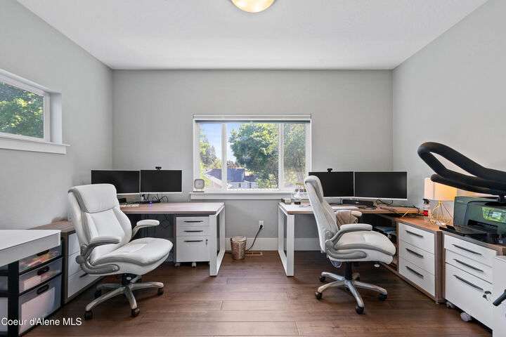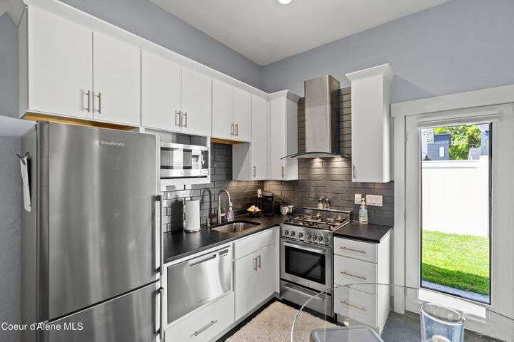 Proximity to Downtown Coeur d'Alene Home with an additional dwelling unit (apartment, additional 700 sqft)! 3149 total sq ft, four bedrooms, 3.5 bathrooms, open concept, featuring a bright and open living room and kitchen. The main floor primary bedroom boasts a large walk-in shower and a built-in closet system. The upper level offers two bedrooms, an office, a living area, and a full bathroom. Additional features include a covered hot tub, covered deck, covered front porch, private backyard patio, and extra parking—studio with full kitchen, bath, and washer and dryer, single level attached to the garage—walking distance to downtown Coeur d'Alene, Sander's Beach, Lake Coeur d'Alene, Shopping, Dining and coffee bars. Four blocks from the Historic Garden District. This home is perfect for entertaining and enjoying all that Coeur d'Alene has to offer.