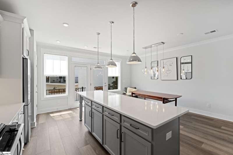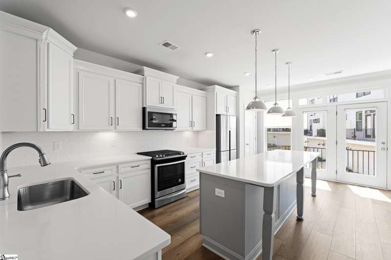 Listed by Chandler Gray, Wilson Associates Real Estate. For more info call Chandler at 404-285-0061 or email chandler@wilsonassociates.net. Welcome to 47 Millside Circle a stylish 3 bed, 2.5 bath townhome with a 2-car garage, just 5 minutes from Downtown Greenville, 3 minutes from Greenville Memorial Hospital, and close to Augusta Road. Built in 2021, this move-in ready home features high ceilings, great natural light, and an open layout. The main level is perfect for entertaining with a spacious living area, dining space, and upgraded kitchen featuring white shaker cabinets, a burlap island, granite counters, stainless steel appliances, and gas range. French doors open to a 4x19 balcony overlooking a peaceful green space. A half bath completes this level. Upstairs, the owners suite includes a walk-in closet and en-suite with dual sinks and a tiled walk-in shower. Two additional bedrooms, a full bath, and laundry room complete the top floor.