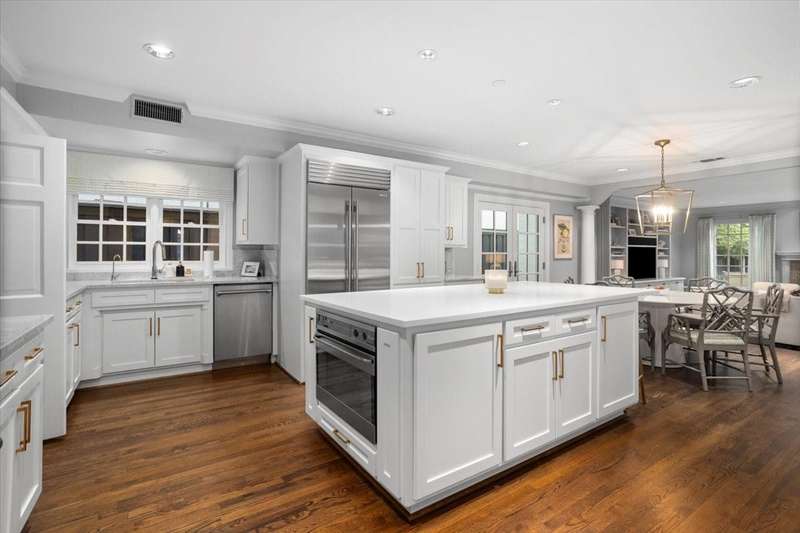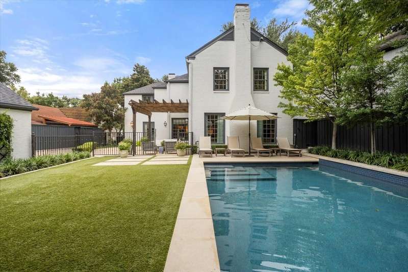 This picture-perfect two-story home sits on a quiet street in Fort Worths coveted Monticello neighborhood. Its manicured lawn and charming curb appeal set the tone for what's inside. The foyer makes an immediate impression with its stunning wallpaper and graceful staircase leading to four spacious upstairs bedrooms. Downstairs, multiple light-filled living areas feature large windows, fireplaces, and a seamless flow for everyday living and entertaining. Thoughtful design details and beautiful wallpaper are found throughout, creating a sophisticated and cohesive aesthetic. The renovated kitchen is a true standout, featuring a Wolf 6-burner gas range, Sub-Zero refrigerator, stainless-steel appliances, and an oversized island ideal for cooking and casual dining. The large primary suite offers built-in cabinetry and a luxurious marble-clad bathroom with soaking tub, walk-in shower, and dual vanities. Outside, a serene backyard oasis awaitscomplete with a show-stopping pool, inviting patio, and lush landscaping. Recent updates include extensive relandscaping and drainage improvements, new ductwork (2024), two new HVAC units (2021), and two tankless water heaters (2023). Sonos speakersinstalled throughout the home and outdoor areasallow effortless audio control from your phone. Perfectly situated for Monticello living, this home is a short golf cart ride to River Crest Country Club and minutes from Camp Bowie bricks and all that Fort Worth has to offer.