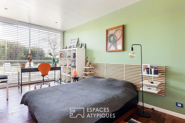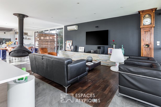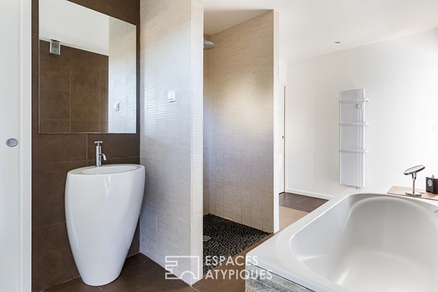 The vast 83sqm living room, which opens onto three terraces, is composed of a living-dining area with a pivoting fireplace and an open-plan fitted and equipped kitchen with a pantry of over 12sqm. The sleeping area includes a large master bedroom with its dressing room opening onto a full bathroom (bathtub and shower). A library lounge follows and can also be used as a guest bedroom. Two other equally spacious and independent bedrooms follow and open onto a final terrace. This contemporary development will appeal to lovers of nature and contemporary purity.