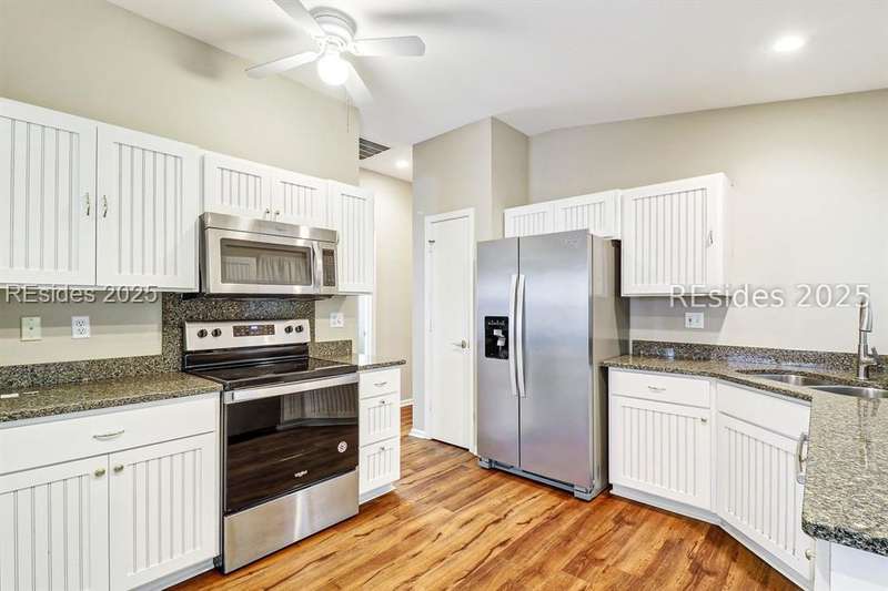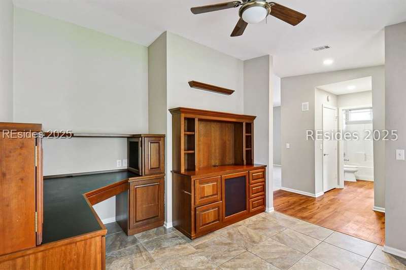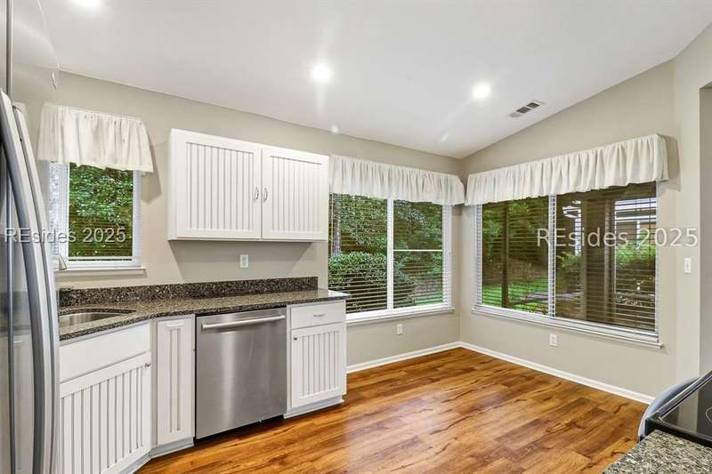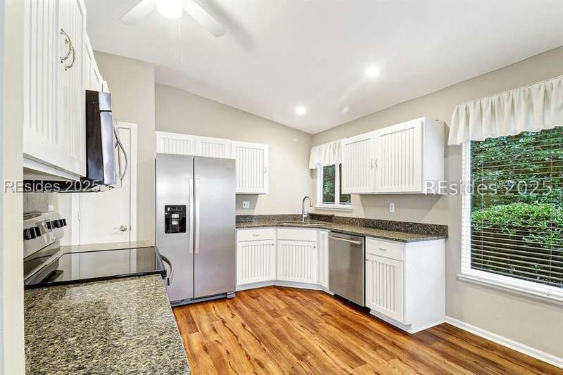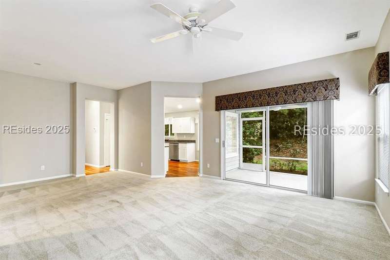 Fabulous location convenient to Town Square, restaurants, and shopping! 2 bedrooms, 2 bathrooms, plus an office or den. Perfect for an office with built-ins. The kitchen is beautiful and has been updated. Appliances are newer, not original. Bosch dishwasher. Roof new in 2015. HVAC new in 2021. Large master bedroom with a nice bay window. Screen porch. New bathroom vanities in both bathrooms. 2 car garage. Take your golf cart to all the Sun City amenities, including golf, clubhouses, pools, walking trails, and entertainment in Town Square. Short drive to Savannah, Beaufort and the beaches of Hilton Head Island!