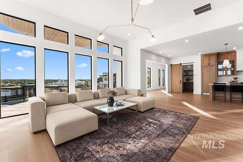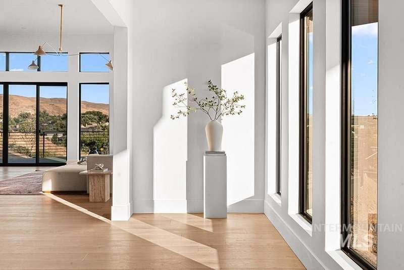 Set above the valley with sweeping views, this custom-built home by Teal Point Custom Homes is truly one of a kind. Wide-plank white oak floors flow under tall, airy ceilings, complemented by designer light fixtures and an open, flowing layout. The great room is wrapped in floor-to-ceiling windows that fill the space with light & capture surrounding views, spilling out onto the wrap-around view deck. Striking dual-sided fireplace defines the living and dining areas. The gourmet chef’s kitchen is equipped with ceiling-height oak cabinetry, a 12+’ island, & a state-of-the-art appliance package that includes full-sized refrigerator and freezer, dual dishwashers, double ovens, & built-in refrigeration drawers. Prep kitchen offers additional appliances & storage. The master is a serene retreat, featuring a luxurious spa-inspired bathroom and spacious dressing room. All guest suites include walk-in closets & private baths, ensuring comfort & privacy. Minutes from foothill trails, river, SE dining & downtown Boise!