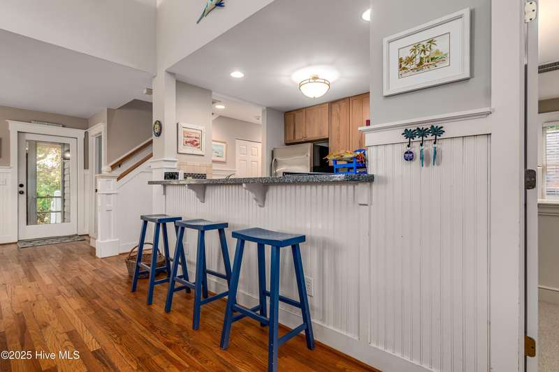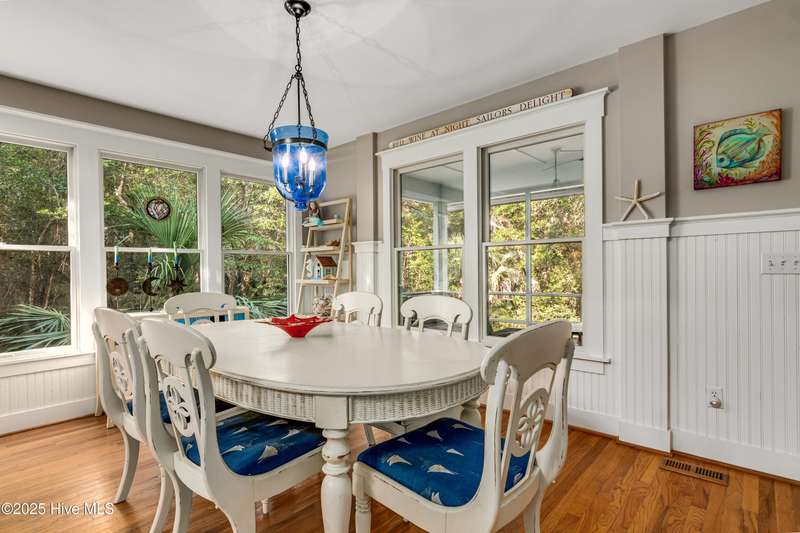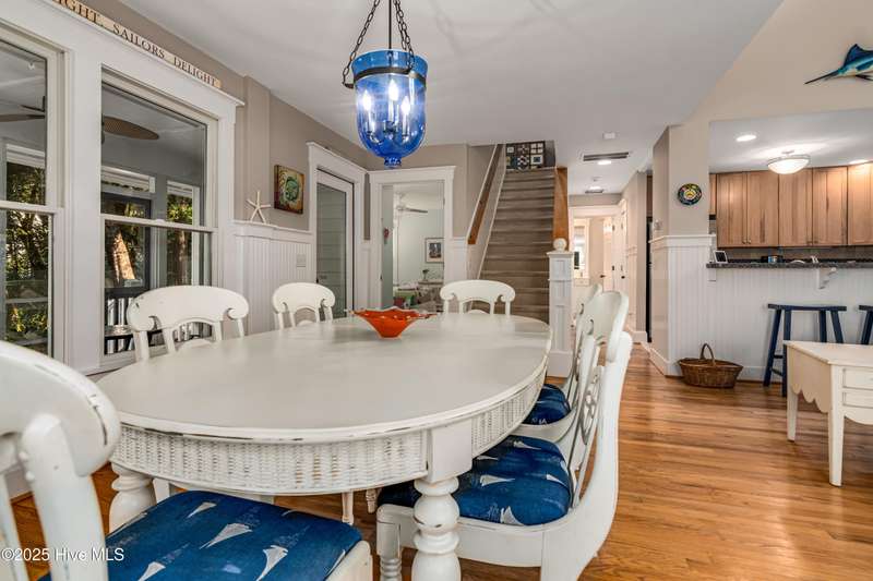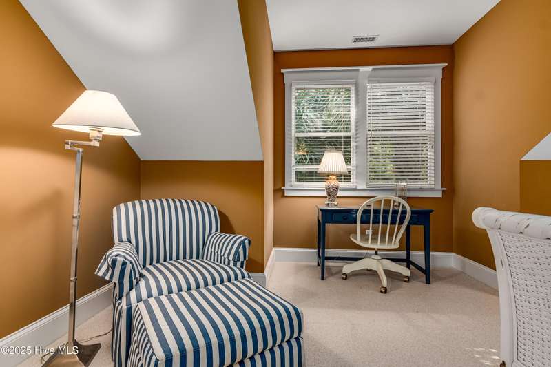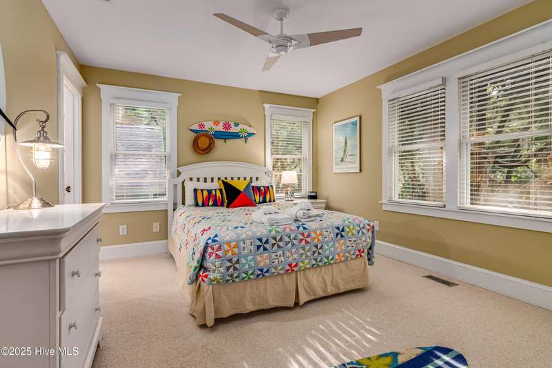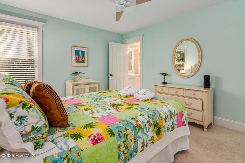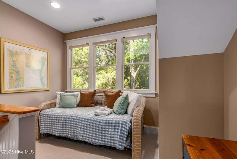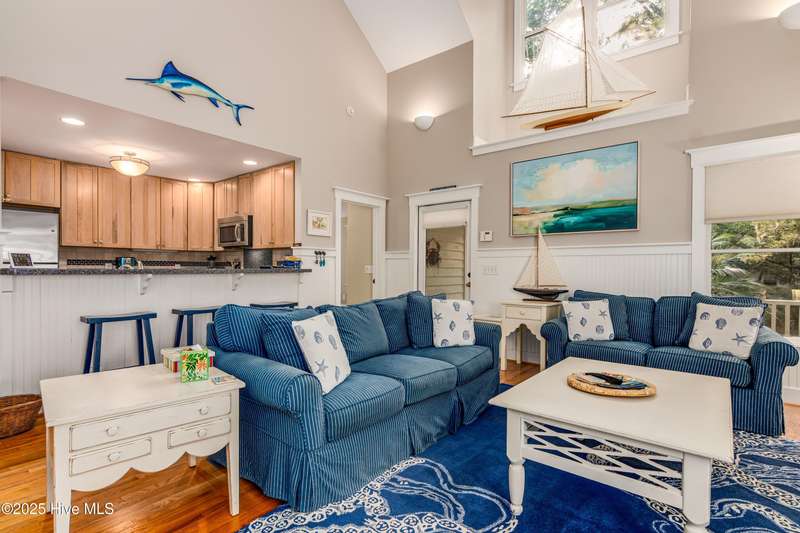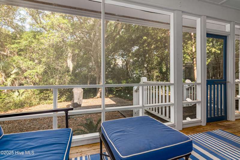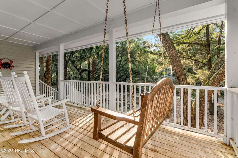 Nestled in the tranquil maritime forest of Bald Head Island, this charming 3-bedroom, 3-bath home offers the perfect blend of comfort, nature, and island lifestyle. Relax on the welcoming front porch or unwind in the screened-in back porch as you listen to the sounds of the forest. The back patio allows for sunbathing as well as grilling out. Inside, the open-concept living and dining areas provide a warm and inviting space for gatherings, while the well-appointed kitchen makes entertaining a breeze. Located downstairs are two Queen guest rooms - one with an ensuite full bath and the other with an ensuite full bath that also opens into the hallway. Upstairs is an oversized Primary Suite with King bed and an ensuite full bath with double vanity and shower/tub combination. The landing of the second floor offers additional sleeping with a twin daybed and trundle in a private alcove. This home comes furnished, minus some exclusions, includes two (4-passenger) golf carts for easy island exploration, and a Shoals Club and Bald Head Island Club membership (Lifestyle/Refundable) is available for separate purchase—unlocking access to world-class golf, dining, tennis, and more. Whether you're looking for a serene primary residence, a vacation getaway, or an investment property, this forest retreat delivers the laid-back, coastal lifestyle Bald Head Island is known for. Home is a rental.