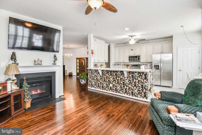 Lovely 55+ home with many upgrades, beautiful wood floors and plantation shutters throughout! The outstanding kitchen has a breakfast bar PLUS room for an eat-in table. Cozy family room off the kitchen ! Two walk-in closets and ceiling fan in the spacious primary bedroom and the luxury bath boasts a handicap tub, dual vanities and separate shower with seat! Cute cute front porch opens into the living area that you'll LOVE, with its dining area off to the side! Though considered a two-bedroom, the nice size den could certainly double as a third bedroom or guest room! Laundry room even has cabinetry, folding counter and laundry sink. SOLAR POWER is installed and paid for.... the owner's electric bill averages $25 a month! There is a second refrigerator w/icemaker in garage that will stay. Walk up lower level is unfinished and is HUGE - ready for however you wish to finish it!