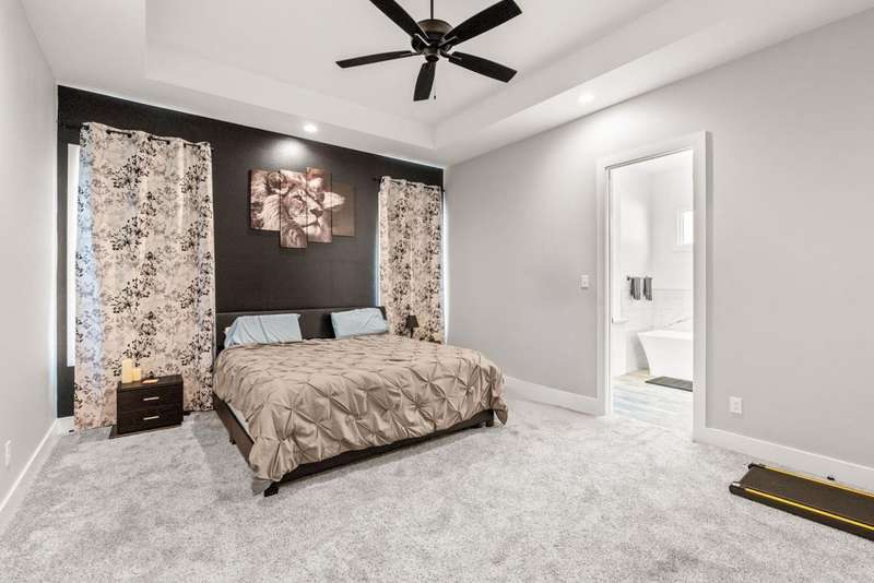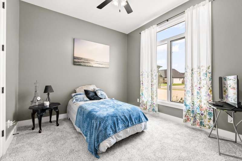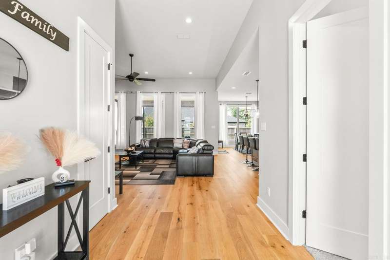 This beautifully designed 4 bedroom, 3.5 bath home offers 2,853 square feet of modern comfort and style. The open concept layout features soaring 12-foot ceilings, light-colored wooden floors, and a spacious kitchen with a large island and walk-in pantry, perfect for gathering and everyday living. The master suite is thoughtfully designed with a convenient connection to the laundry room, adding ease to your daily routine. Large windows and doors bring in plenty of natural light and create a seamless flow to the glassed-in back patio, ideal for relaxing or entertaining in any season. Additional highlights include a 3-car garage, extra parking in front, a full sprinkler system for easy lawn care, and the home???s close proximity to Hurricane Lake, making it a perfect blend of space, design, and functionality. Come see it for yourself!
