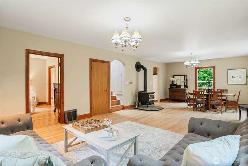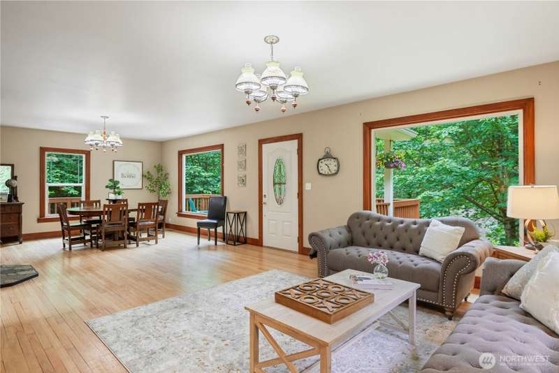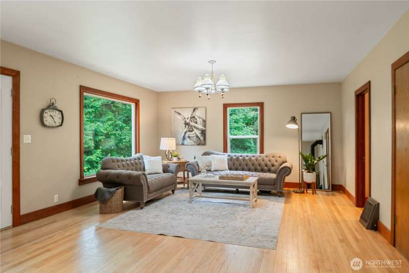 Discover your dream farmhouse nestled on over 9 serene acres! This delightful home boasts 4 spacious bedrooms, 2.5 baths, including a convenient main-level primary suite with a private bath. Enjoy the character of original hardwood floors and the expansive living and dining areas. A large daylight basement provides ample storage and potential for expansion. Embrace the beauty of nature with harvestable timber, hiking trails, and ATV riding right at your doorstep. Bonus features include a seasonal creek, a chicken coop, and a loafing shed for your goats, perfect for creating your own hobby farm. Plus, there may be potential for subdivision or ADU— buyer to verify. Tour this charming farmhouse and claim your slice of rural paradise today!