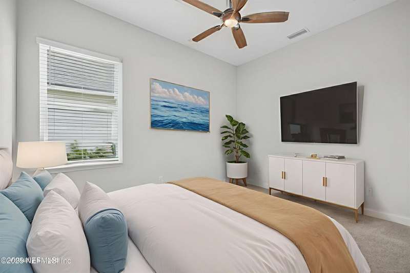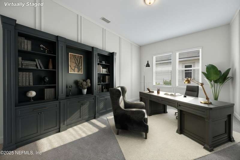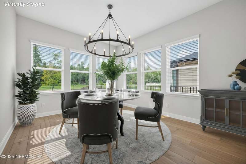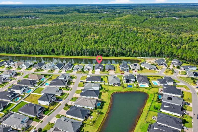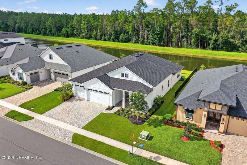 Welcome to Silverleaf Village, a premier master-planned community in St. Augustine, FL! This beautifully maintained waterfront home offers an open-concept floor plan featuring 4 spacious bedrooms, 3 full bathrooms, a versatile flex space, and a convenient casual dining area. The gourmet kitchen is a chef's dream, boasting wall ovens, a gas cooktop, quartz countertops, ceiling-height cabinetry, and a large island with seating; perfect for both everyday living and entertaining guests. Enjoy seamless transitions from the kitchen to the great room and dining area, enhanced by sliding glass doors that showcase serene pond views and lead to an oversized lanai with a retractable screen. The flexible bonus space can be tailored to suit your lifestyle, whether for a home office, playroom, or gym. Retreat to the spacious owner's suite, which features a luxurious spa-style bathroom with split vanities, custom tilework, and a roomy walk-in shower. Three additional bedrooms provide comfort and privacy for family or guests. Designer upgrades throughout include custom paint, wainscoting, built-in cabinetry, wood flooring, an arrival station and upgraded lighting. Silverleaf Village offers residents an array of amenities with no CDD fees: swimming and lap pools, splash park, tennis and pickleball courts, clubhouses, and more. Top-rated schools, popular restaurants, shopping, beautiful beaches, and historic downtown St. Augustine are all just minutes away. Schedule your showing today.