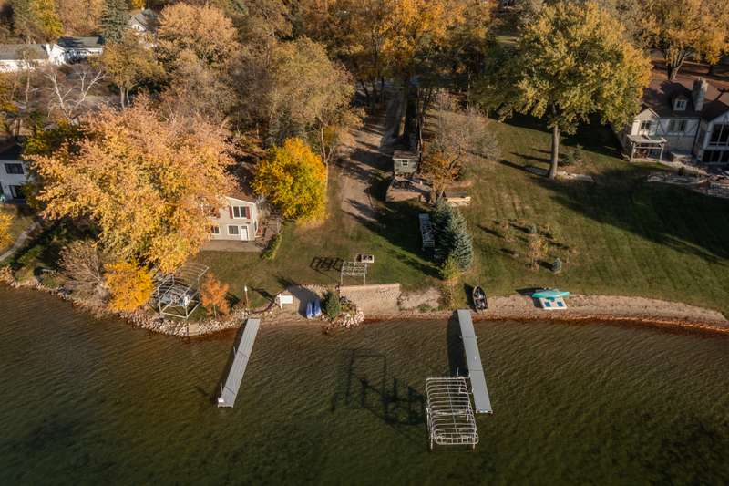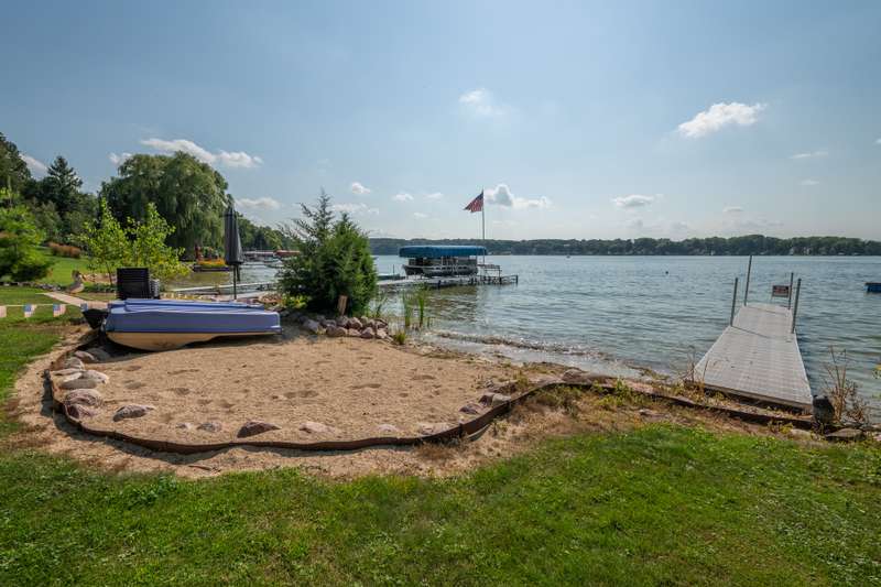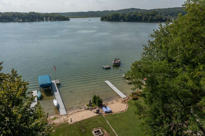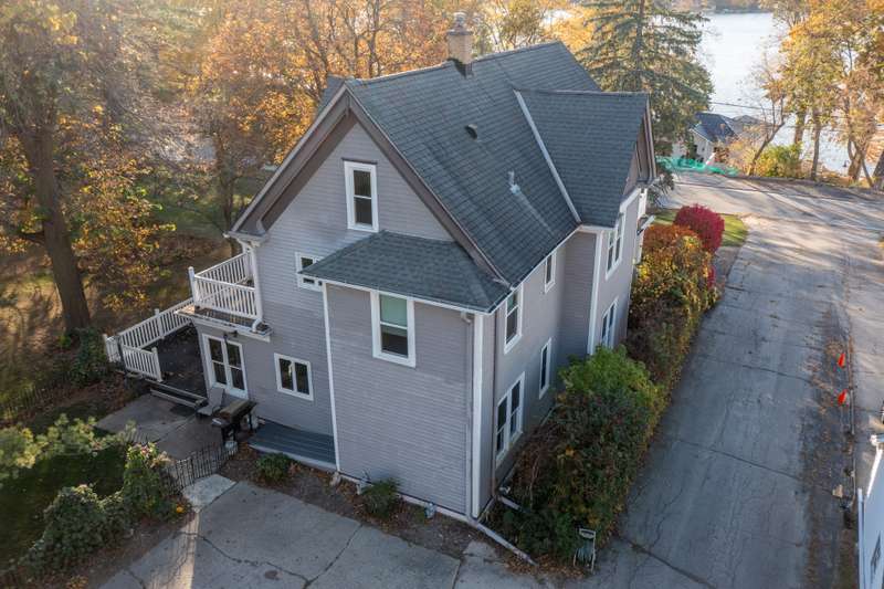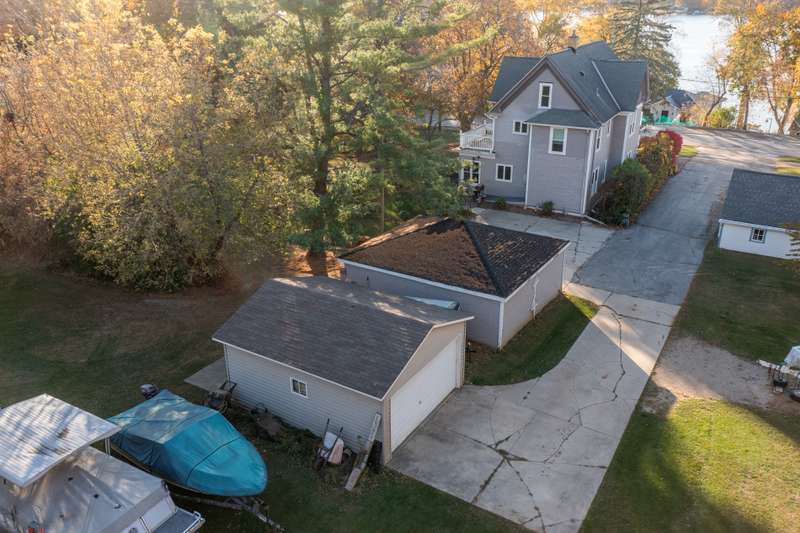A rare lakeside opportunity awaits with this Victorian home on Little Cedar Lake. Whether you are seeking a year-round residence, a vacation retreat, or an income-generating property, this 4-bedroom, 2-bath gem offers endless possibilities on 1.17 serene acres. Boasting 30 feet of pristine, sandy lake frontage, the perfect spot for swimming, and a private pier for easy water access, this property invites relaxation and outdoor enjoyment. Surrounded by tranquil, wildlife-friendly grounds, it is a true haven for those who love nature and the water. The welcoming front porch, framed with classic white railings, provides ample space for wicker furniture and rocking chairs, ideal for enjoying the lake views and fresh country air. Inside, the home offers exceptional versatility. Currently a single-family residence, it was previously configured as a duplex, featuring two separate living areas, each with its own kitchen and full bath, one on the main level and one upstairs. The finished walk-up attic provides even more living space, perfect for a bunk room, studio, or home office.Two detached garages provide abundant storage for lake toys, tools, and more. With its unique combination of history, charm, and functional layout, this property is ready for you to make lasting memories by the lake. Do not miss this one-of-a-kind Little Cedar Lake retreat.