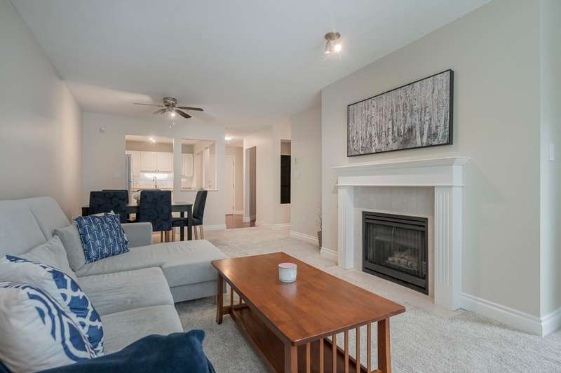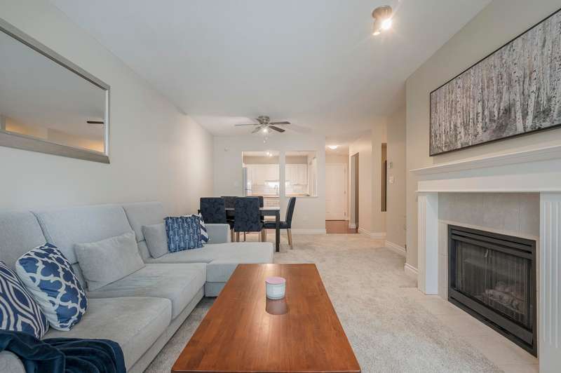 View this beautiful, move-in ready 2 bed, 2 bath & den condo. The airy living room offers a gas fireplace, large windows & adjoining dining room for entertaining. The kitchen has plenty of cabinet/counter space with room for an island or breakfast nook. The spacious primary fits a king bed & features a double walk-through closet to the en-suite. Fresh paint, new carpets & washer/dryer add value. The strata has completed a full exterior renovation for peace of mind. Enjoy resort-style amenities: outdoor pool, hot tub, gym, clubhouse, sauna, workshop & guest suite. Ideally located near Green Timbers Park, transit, Guildford Mall & Hwy 1.