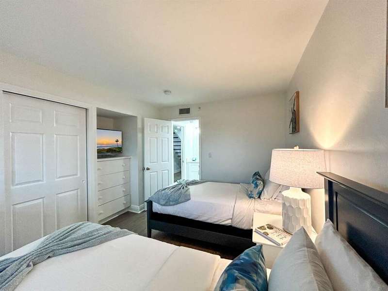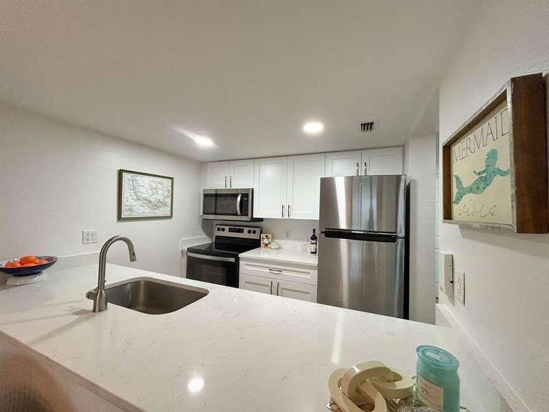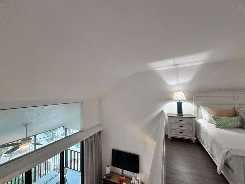 Located behind the gates of South Seas Resort, the exclusive Captiva Resort Villas community offers a serene coastal retreat with a sundeck, pool, gazebo featuring a outdoor dining area, and BBQ facilities. Nestled within the southern enclave, just steps from the beach, this renovated top-floor, two-story villa overlooks a lush courtyard and tropical vegetation. The open-concept design showcases quartzite countertops, white shaker cabinetry, and tile flooring in living areas, all complemented by stylish coastal decor and furnishings. Natural light pours in through impact sliding glass doors and a large picture window, while the screened lanai provides a perfect spot to enjoy the island breeze. The lower level hosts a private guest ensuite, while the upper level boasts a spacious primary ensuite, creating an ideal layout for both relaxation and entertaining. Experience resort-style living in this beautifully appointed villa, where modern elegance meets coastal charm.