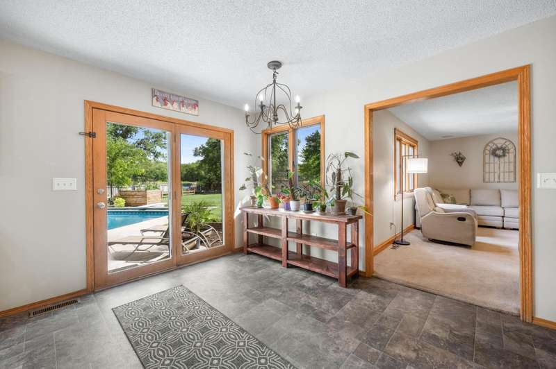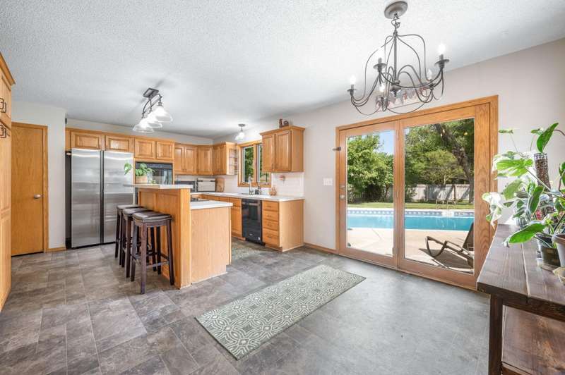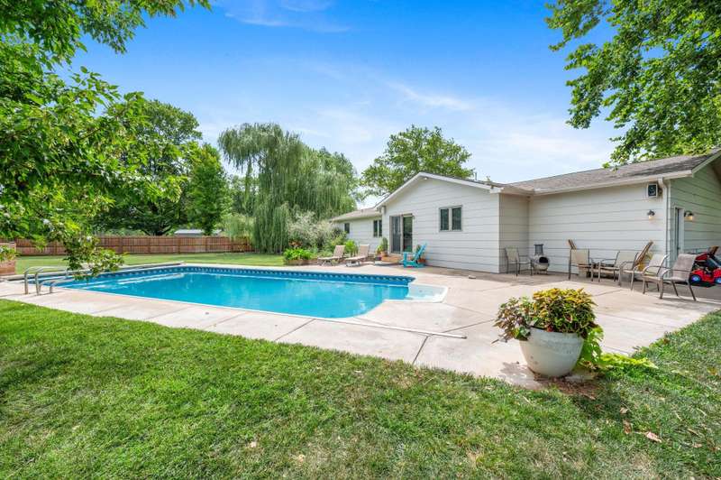 Discover your private oasis in Derby! This 3 bedroom, 2 bathroom home is ready for you to enjoy with an oversized 1/2 acre lot, in ground pool with automatic cover, easy access to the green space behind the home and a new septic system will be installed prior to closing. Open layout, spacious rooms, wired for surround sound inside and out with many upgrades make this a great home for relaxing and entertaining. The main floor offers a large living room with decorative mantle, formal dining room and a lovely kitchen. The kitchen features an additional eating space, eating bar, built in desk area, pantry storage, an island with an electric cook top, double oven and it overlooks the beautiful backyard. Three bedrooms and two full bathrooms complete the main floor. The primary bedroom includes two closets and an attached bathroom. Downstairs there is plenty of place for seating, a basement office, a game or craft area. It's ready to make the space your own. The third car garage is insulated with an AC unit for comfort and makes a nice shop with a barn door separating it from the two car garage. There is room to park a trailer, RV or boat under the large carport with double gate access. Chickens can roam free in the yard with a shed for storage and a nice garden area. Welcome home!