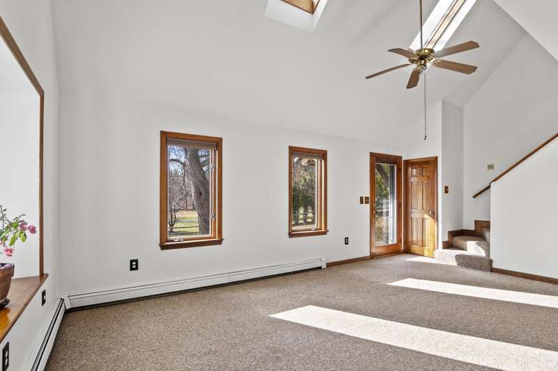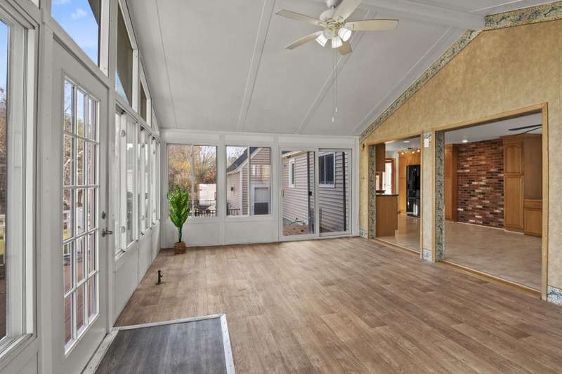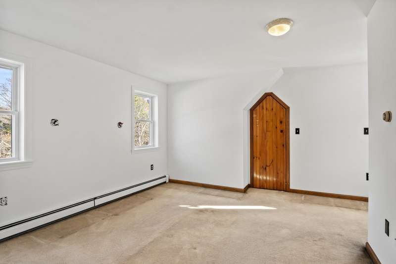The possibilities are endless in this 3+ bedroom, 2 bath expanded Cape with four-car heated garage, perfectly situated on a quiet cul-de-sac! Step inside to a spacious living room with cathedral ceilings, skylights, and a cozy fireplace. The oversized eat-in kitchen offers plenty of cabinet space and opens to a bright three-season porch overlooking the beautiful backyard. Outside, the deck is perfect for relaxing or entertaining, with views of nature all around. The property also features a former in-ground pool with a pool shed, and even has existing horse stalls—ideal for anyone dreaming of a hobby farm or additional outdoor possibilities. The first floor features two bedrooms—one of which could easily serve as a home office, along with a flexible bonus room that could be used as a playroom or even transformed into a spacious primary suite. Upstairs, you’ll find two additional generous bedrooms, a loft-style hallway with laundry, and a large bathroom complete with a jetted tub, stand-up shower, and double vanity. Car enthusiasts will love the garages—one is attached and the other is detached, both heated and feature electricity! Bring your imagination and make this versatile property your dream home!