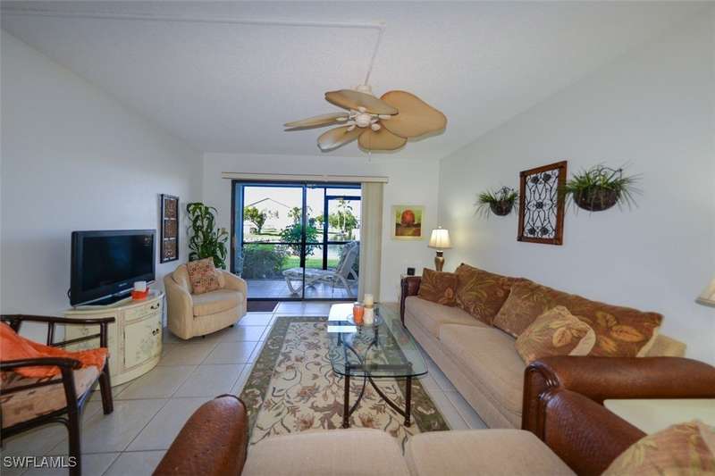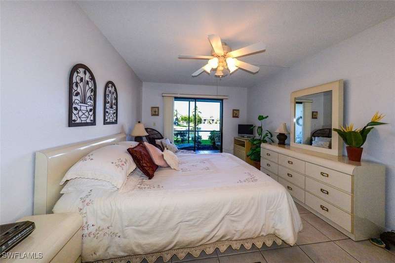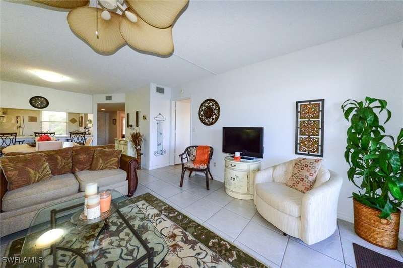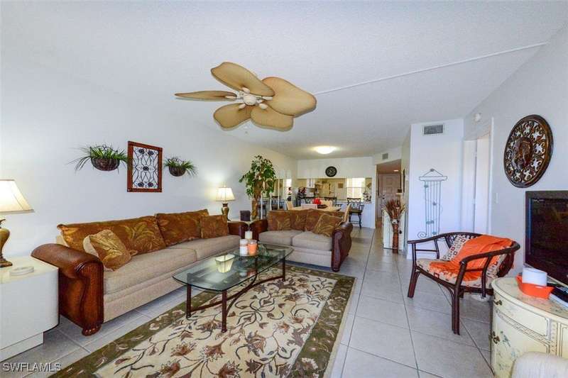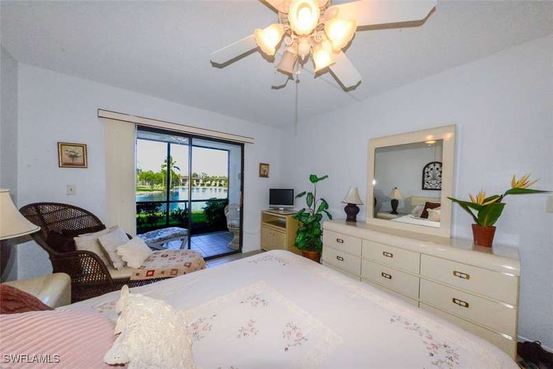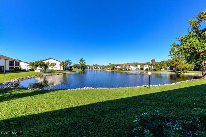 Welcome to this beautifully maintained and spacious 2-bedroom, 2-bathroom condominium located in one of the most sought-after communities in the area. This GROUND-FLOOR unit offers the perfect blend of comfort and convenience. TURNKEY and No more stairs!! Relax on your private oversized Lanai while enjoying the stunning view of the Lake with your morning coffee or watching the beautiful sunset! The master bedroom includes a walk-in closet, providing ample storage space for all your belongings. The large windows allow natural light to fill the space, highlighting the elegant finishes and warm tones throughout. Located in a prime location, this unit is just minutes from shopping, dining, parks, entertainment and beaches. Low Condo fee includes, water, sewer and basic cable too! Don't miss the opportunity to make this charming condominium your new home! NOT IN A FLOOD ZONE! Schedule a showing today!