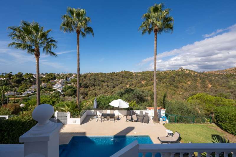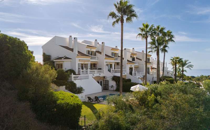 This beautiful three-level townhouse is located in a peaceful and well-established residential area of Calahonda, Mijas Costa, just 25 minutes from Málaga Airport. With a built area of approximately 290 m² and a plot of 596 m², it combines space, comfort, and Mediterranean charm. The property offers four bedrooms, ideal for families or hosting guests, and three bathrooms plus a guest toilet. It features a private swimming pool with additional access to the communal pool, and several sunny terraces offering stunning views of the sea, mountains, and lush greenery, as well as private outdoor areas perfect for relaxing. A garage within the plot adds convenience and ease of access. Among the recent renovations and upgrades, the modern poolside area has been completely refurbished, and the entrance has been redesigned with new outdoor spaces. The basement has been transformed into a bedroom with an en-suite bathroom and direct access to the pool, offering flexibility and comfort. Solar pane