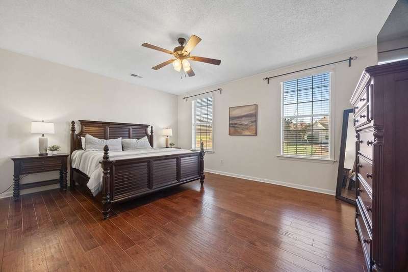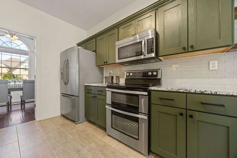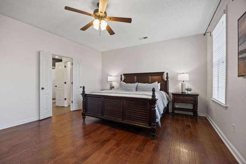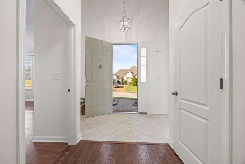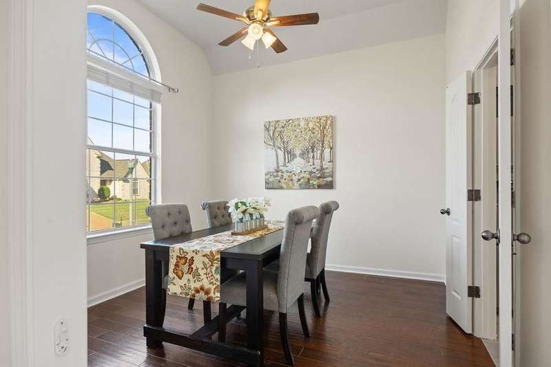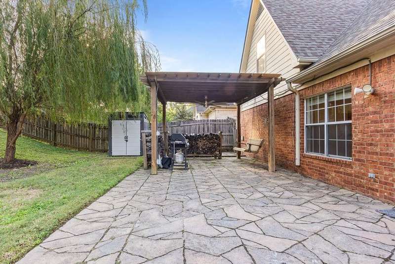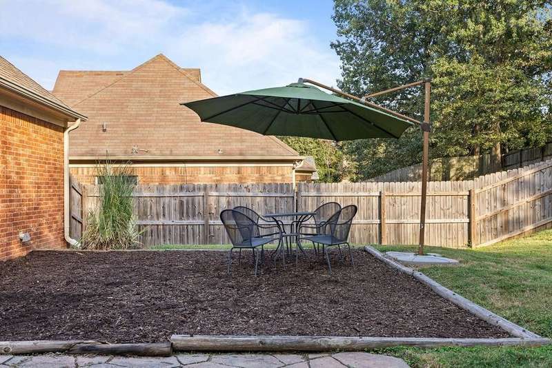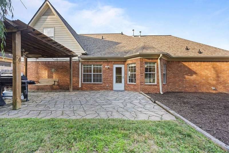 Stylish comfort meets everyday convenience in Cordova! Welcome home - a beautifully maintained 3bd/2.5ba home featuring hardwood floors a spacious kitchen with granite countertops, stainless steel appliances with custom floating shelves and breakfast bar. The separate dining room offers flexible use as an office or formal space. The luxury primary bath includes a soaking tub and rain shower head. Enjoy outdoor living with a large partially covered patio, wooden swing, grill area, and separate fire pit. Gas fireplace, wide 2-car garage, and modern finishes throughout complete this move-in-ready home. Room to entertain inside and out! Some living room photos have been virtually staged.