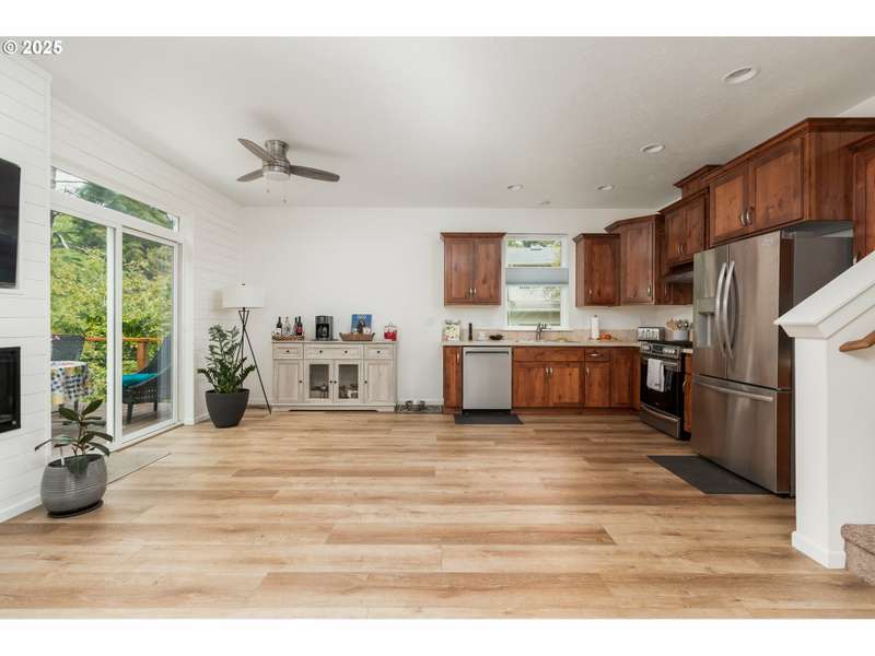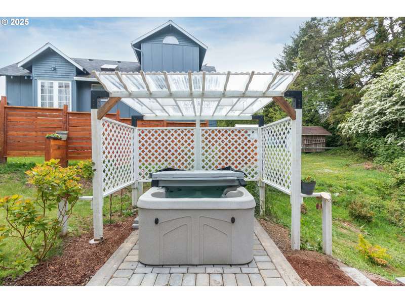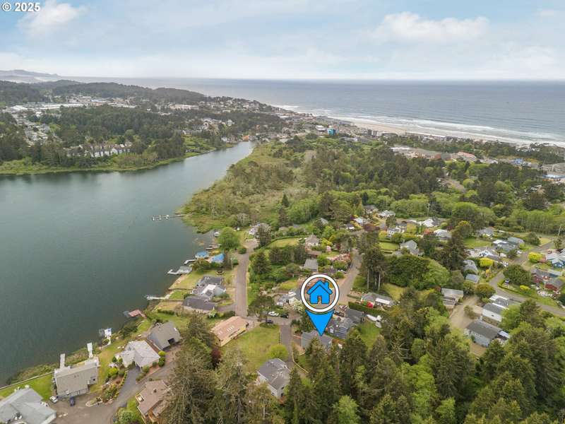 No expense spared in building this beautiful 3-bed, 2.5 bath home on 1/3 of an acre, near Devil's Lake State Park. Built new in 2022, it features a lake view in the front and a forested creek in the back. Enjoy the large fire-pit patio, horseshoe pit, and hot tub. Home has too many features to list: Exterior wrap with insulated walls and garage; Broan fresh air intake system; Chef's kitchen with gas range and 220 amp plug if electric is preferred; Knotty alder cabinets; Electric fireplace; 55'' mounted Samsung TV with Bose soundbar; 30 amp breaker with electric vehicle charging system; Maytag washer & dryer; Irrigation system and cedar privacy fencing; Gas water heater; Top-down, bottom-up blinds; Zone heating system. This house has been meticulously maintained and lived in sparingly since completion. Feels like a brand-new home! Don't miss this opportunity to own like-new construction in a quiet, established lake-front neighborhood in the heart of Lincoln City. Close to Regatta Park with playground, picnic area, and boat launch.