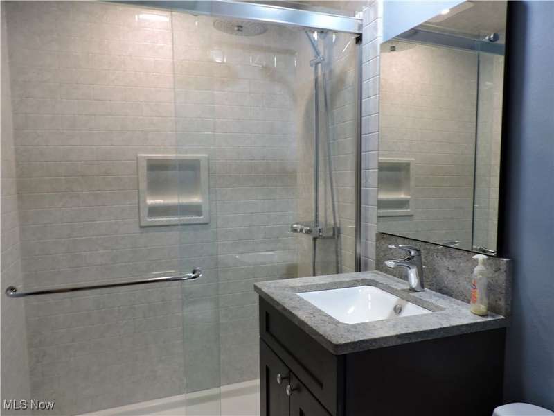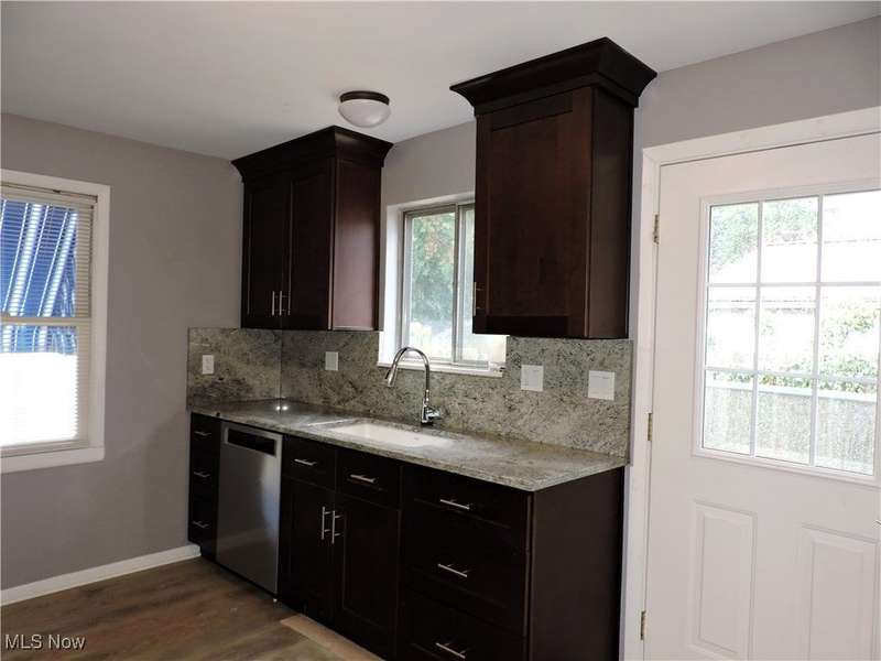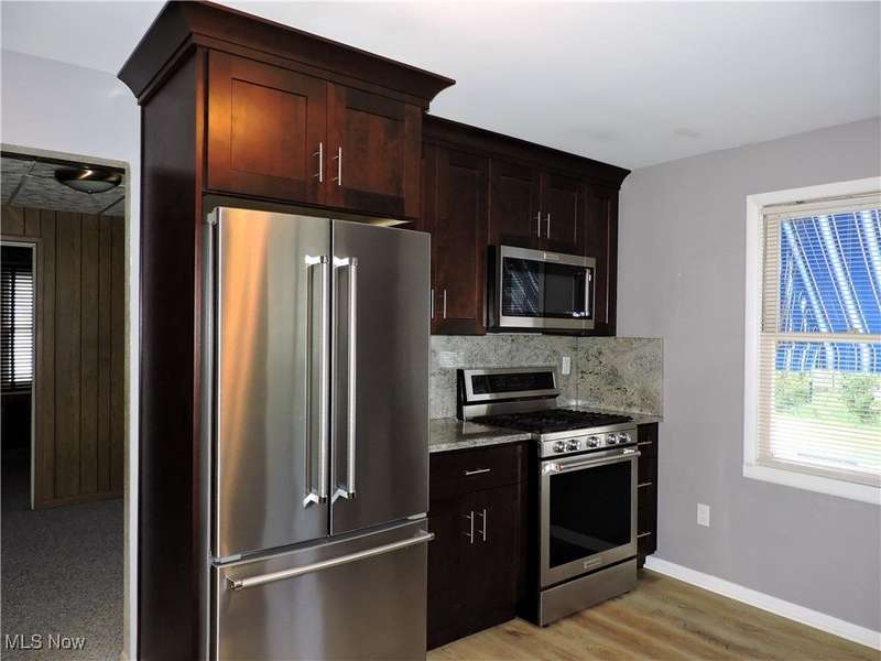 Spacious 4-bedroom, 2-bath split-level home featuring a stunning living room with vaulted, beamed ceilings and a versatile bonus area perfect for a sitting room or teen hangout. The beautifully updated kitchen boasts 42-inch cabinets, new appliances and modern finishes. Convenient main-floor bedroom includes a tandem room ideal for an office or nursery. Upstairs you'll find two guest bedrooms and a remodeled full bath with a luxurious two-person shower. The finished lower level offers an additional bedroom, full bath, and laundry area. Outside, enjoy a fenced yard with room to relax or play, all within walking distance to the lake and park/playground.