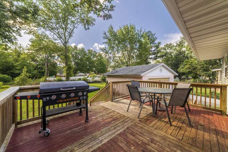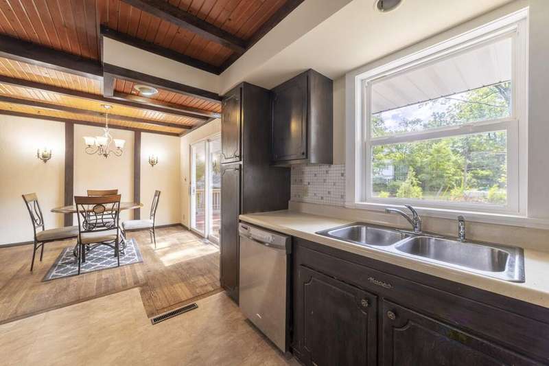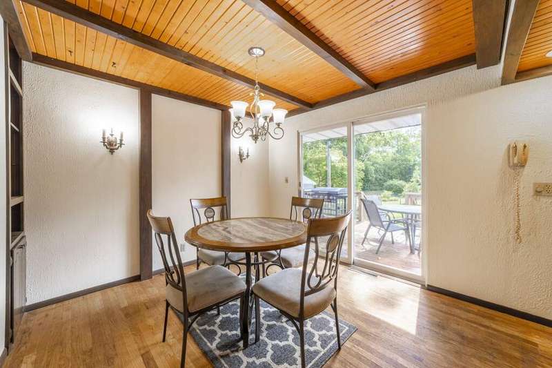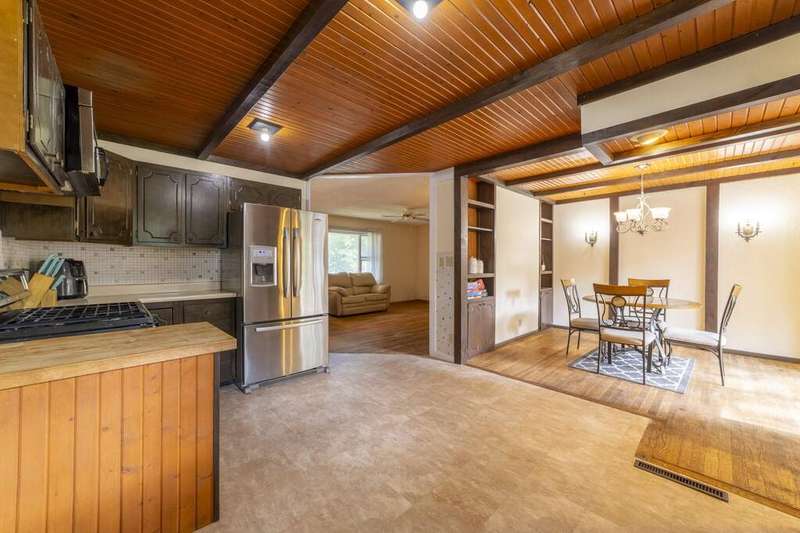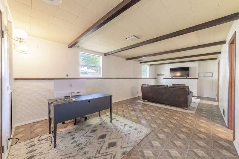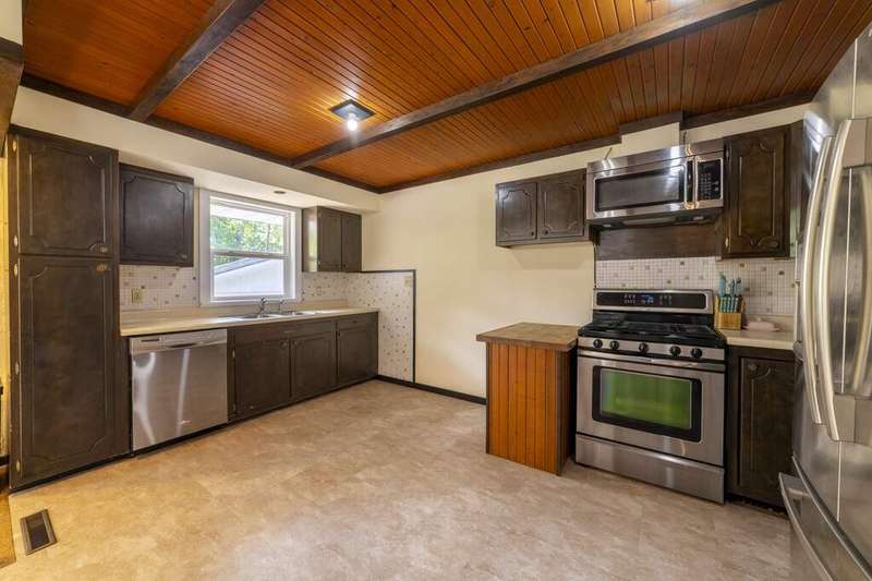 Check out this charming 3 bedroom, 2 bath VILLAGE GREEN gem that's just waiting for you to call it your own! Cozy living room offering hardwood floors and a classic brick wood-burning fireplace perfect for those chilly fall/winter nights. Spacious kitchen open to lovely dining room with built-in shelves. Updated full bathroom in 2025. In the lower level, you will find a large freshly painted family room with brick gas fireplace and the third bedroom with large cedar closet & egress window. Walk-out from the lower-level laundry/mud room leading to the exterior. Rear deck overlooking the fully fenced back yard which gives you tons of space for entertaining or just lounging around. Two car garage and loads of extra parking in the expanded driveway. Big ticket items completed for you include new vinyl siding on house (2023), new front door (2023), newer roof (2017), furnace & A/C (2021). This home is the perfect mix of updated features and classic character that'll make you feel right at home.