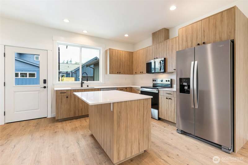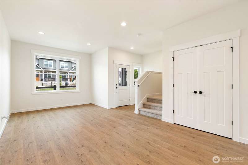 Welcome to Trailside, a new Cordata Townhome community alongside Northern Lights Park. These modern, craftsman style homes offer warm, premium finishes throughout w/ thoughtfully designed floor plans that check all the boxes. This is a 2-bedroom design w/ a 2-car driveway & fenced front yard along the park. Main floor offers a welcoming great room, half bath, and kitchen w/ quartz counters, custom wood cabinets, & stainless-steel appliance package. Upstairs you will find the laundry room & 2 large primary bedrooms w/ en-suite bathrooms & walk-in closets. Features include ductless heat/AC, premium flooring, outdoor storage, 9-ft ceilings on main floor - the list goes on. Ready for you to move in & make it your own!