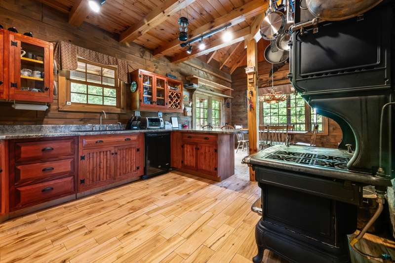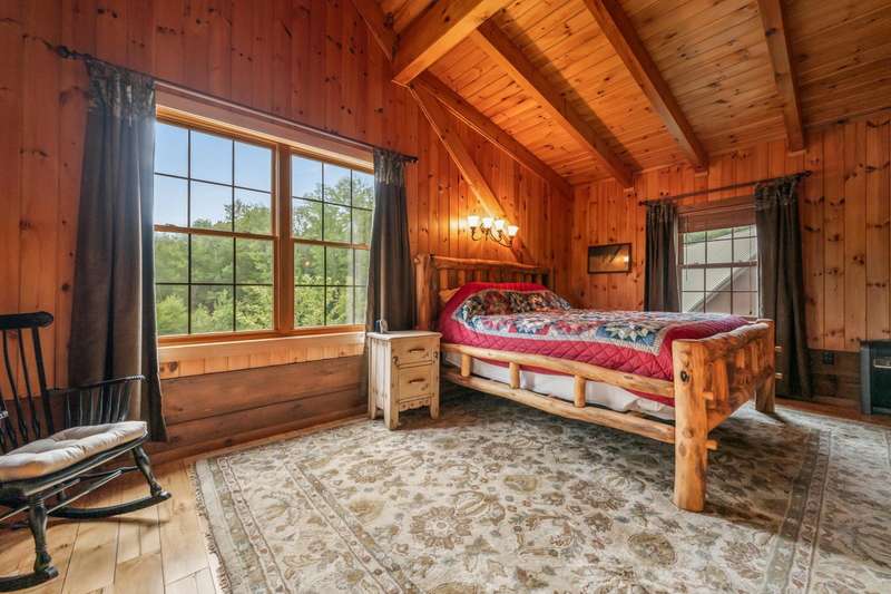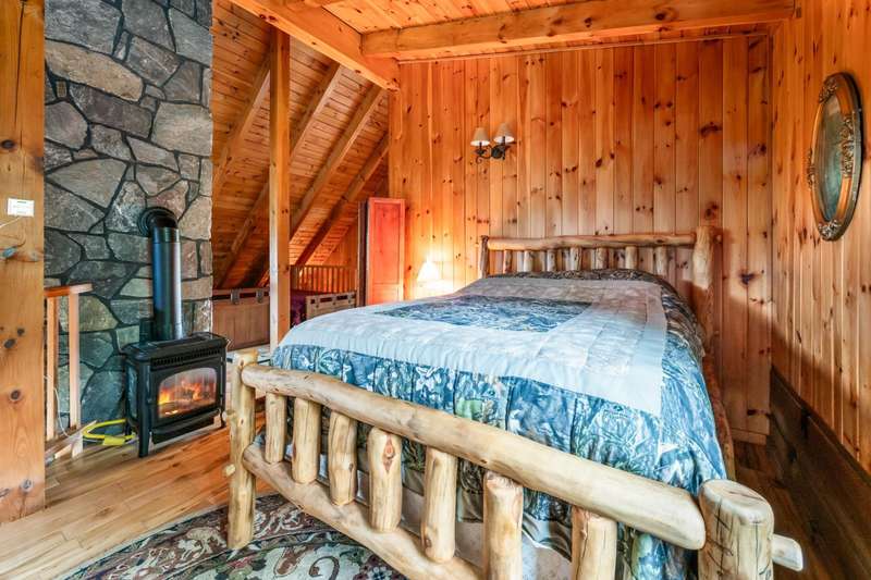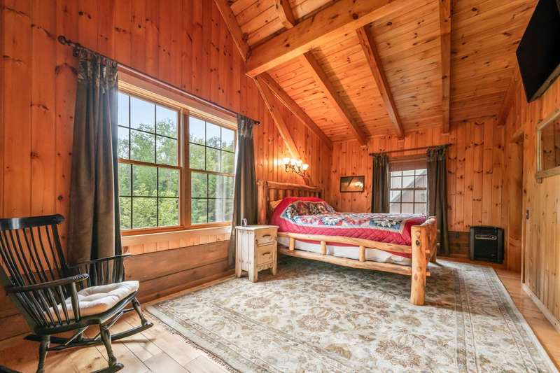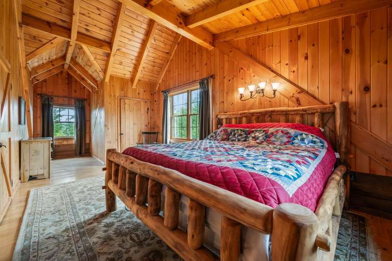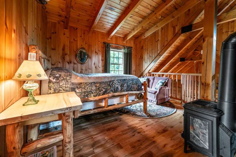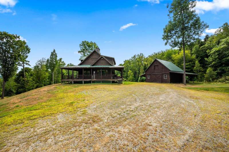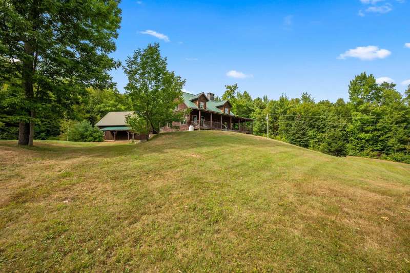 Perched atop a gentle hill on just over 12 private, wooded acres, this inviting 3-bedroom, 2-bath log cabin is affectionately known by its owners as "Just a Camp" but it’s so much more. Inside, you’ll find a warm and welcoming layout with a spacious kitchen featuring a custom dual-fuel wood cookstove—perfect for hearty meals and rustic charm. The cozy living room is anchored by a grand stone fireplace, ideal for relaxing evenings by the fire. The main floor includes two comfortable bedrooms and a full bath, while the upstairs hosts a private primary suite and an open loft with additional sleeping space. A full walkout basement offers ample potential for expansion, storage, or workshop space. Step outside to enjoy the wraparound deck overlooking a sweeping lawn with fruit trees, a small pond, and mountain views through the trees. A large barn provides plenty of space for storing equipment, tools, or recreational toys. The surrounding woods offer endless opportunities for hunting, hiking, and exploring right out your back door. Whether you're looking for a peaceful retreat, a year-round home, or the perfect hunting camp, this property delivers. Call today to schedule your private viewing. Abutting land is also available at MLS#5057915