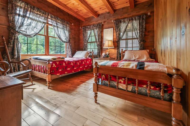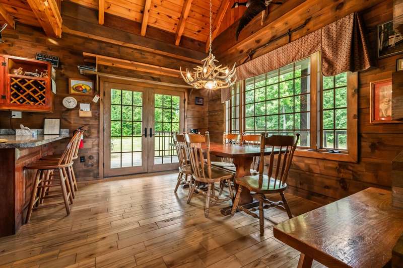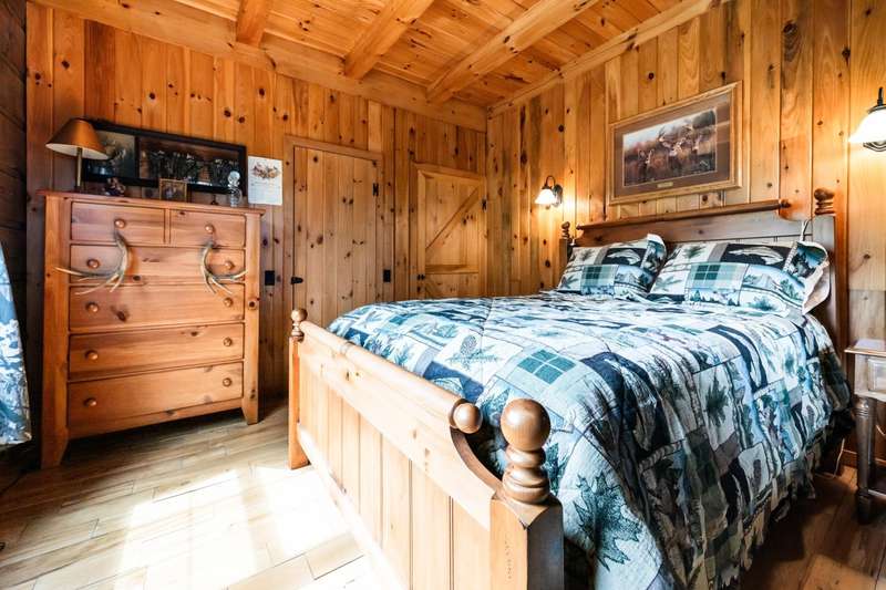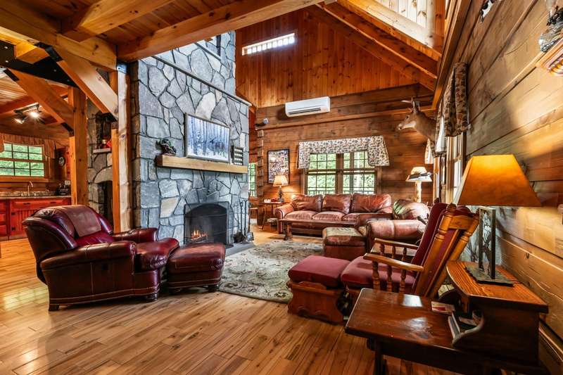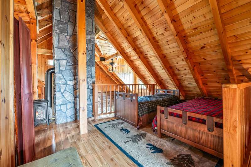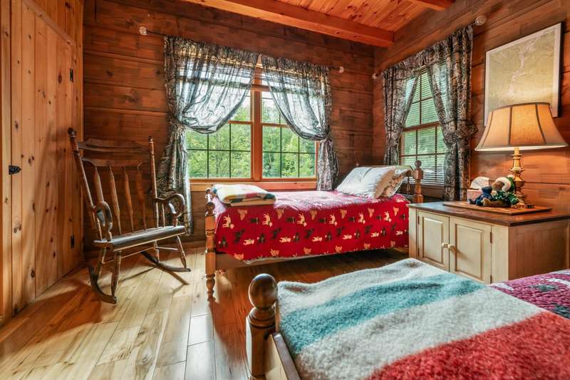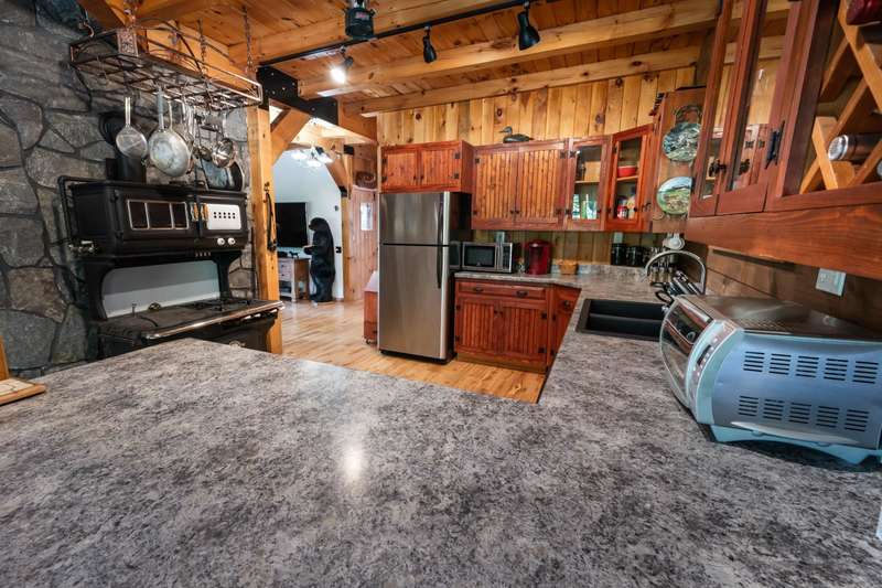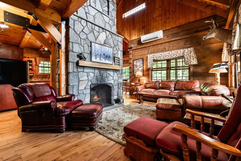 Perched atop a gentle hill on just over 12 private, wooded acres, this inviting 3-bedroom, 2-bath log cabin is affectionately known by its owners as "Just a Camp" but it’s so much more. Inside, you’ll find a warm and welcoming layout with a spacious kitchen featuring a custom dual-fuel wood cookstove—perfect for hearty meals and rustic charm. The cozy living room is anchored by a grand stone fireplace, ideal for relaxing evenings by the fire. The main floor includes two comfortable bedrooms and a full bath, while the upstairs hosts a private primary suite and an open loft with additional sleeping space. A full walkout basement offers ample potential for expansion, storage, or workshop space. Step outside to enjoy the wraparound deck overlooking a sweeping lawn with fruit trees, a small pond, and mountain views through the trees. A large barn provides plenty of space for storing equipment, tools, or recreational toys. The surrounding woods offer endless opportunities for hunting, hiking, and exploring right out your back door. Whether you're looking for a peaceful retreat, a year-round home, or the perfect hunting camp, this property delivers. Call today to schedule your private viewing. Abutting land is also available at MLS#5057915