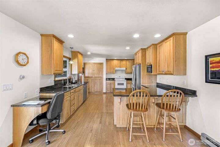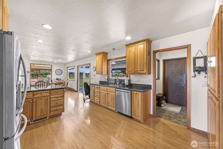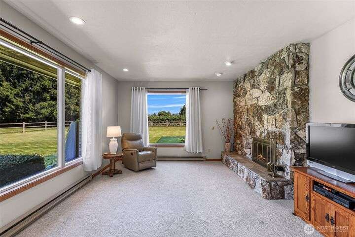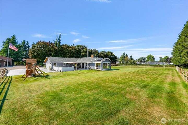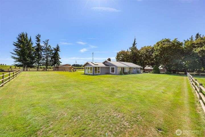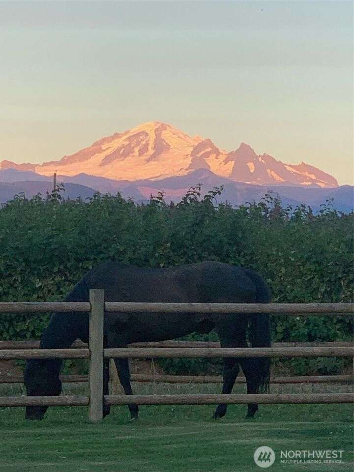 Welcome to your dream country retreat! Perfectly positioned between Lynden and Bellingham, this beautifully maintained single-story home offers unmatched panoramic views of Mount Baker and the surrounding countryside. Whether you're an equestrian enthusiast or simply seeking a peaceful rural lifestyle, this property has it all. Set on a serene and usable parcel, the home features fenced pastures, a well-equipped 4-stall horse barn, a separate shop, and covered RV storage—ideal for hobbyists, horse owners, or those needing extra space. Inside, enjoy bright, open living spaces with large windows that frame the mountain views. The layout is functional and inviting, offering comfort and convenience all on one level.
