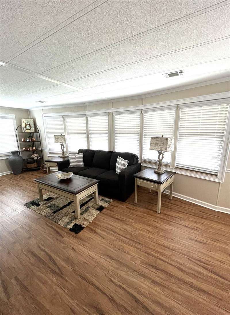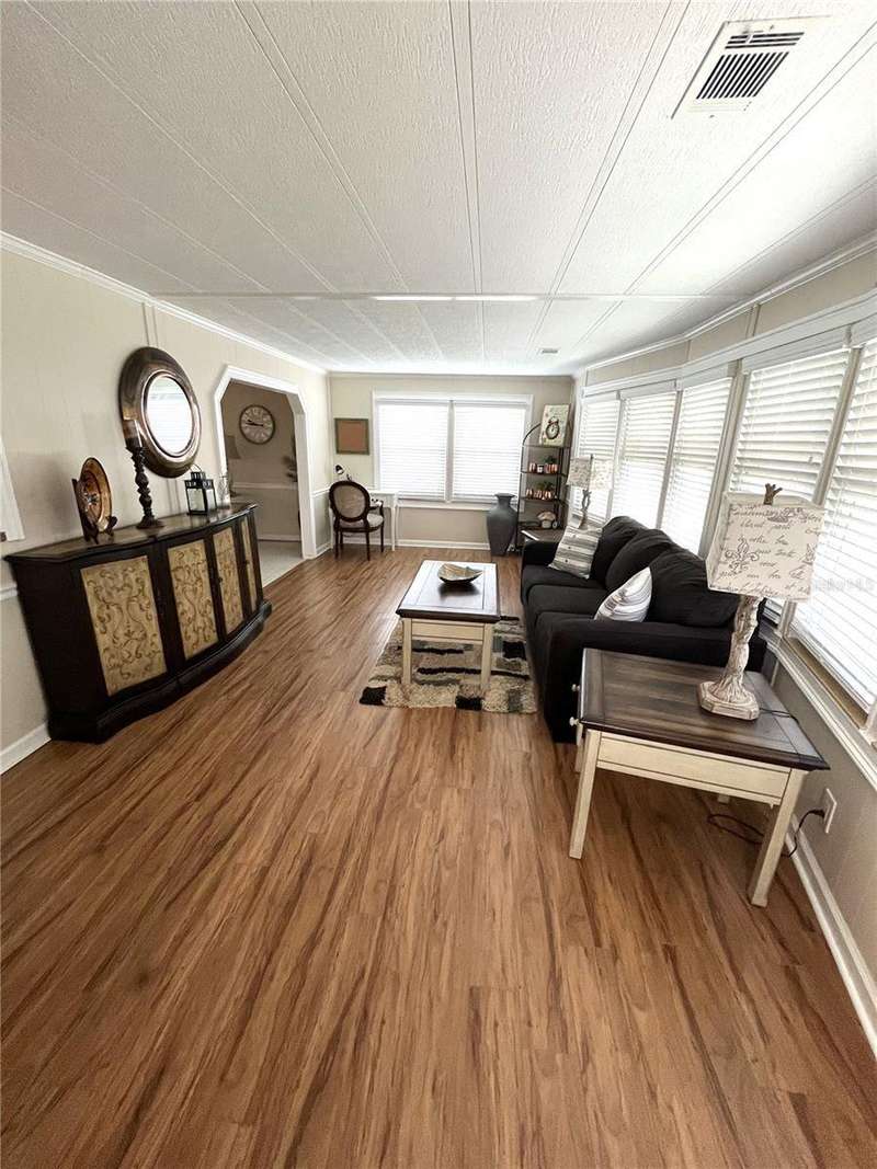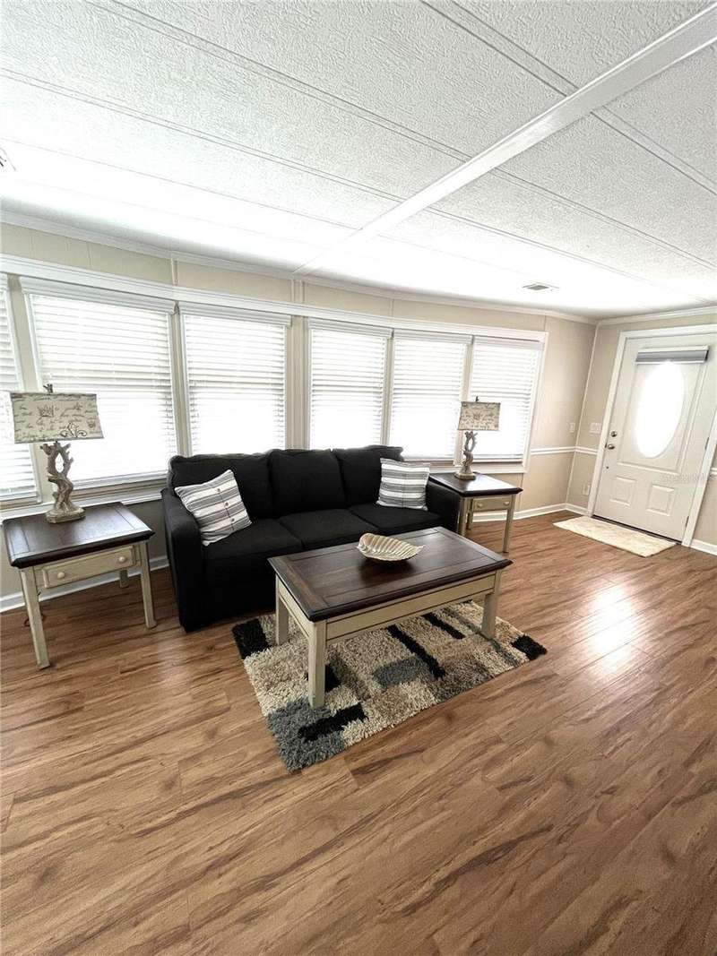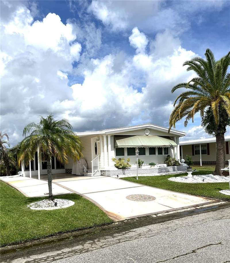 Nicely updated home in popular land owned Harbor Isles. Large ticket items including kitchen and both bathrooms have been updated. Open floor plan makes entertaining and casual living a breeze. Plenty of elbow room for visiting friends and family. Enjoy the large air conditioned Florida room, great for football parties, preparing libations, games, hobbies and more. The laundry area has direct access from the Florida room for privacy. No carpet, ceramic tile or laminate throughout. Both bedrooms have walk-in closets. The membrane roof was replaced in 2018, A/C 2022. This pet friendly, 55+ community boasts resort like amenities and activities that will keep you busy year round. Convenient to beaches, shopping, dining, Atlanta Braves ball field, downtown Wellen Park, interstate and airports. Call today for your private viewing.