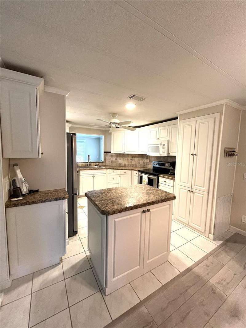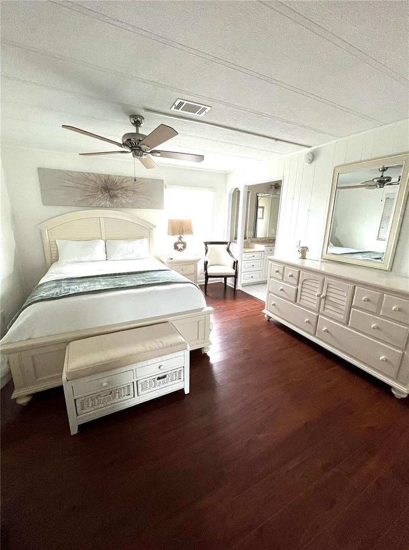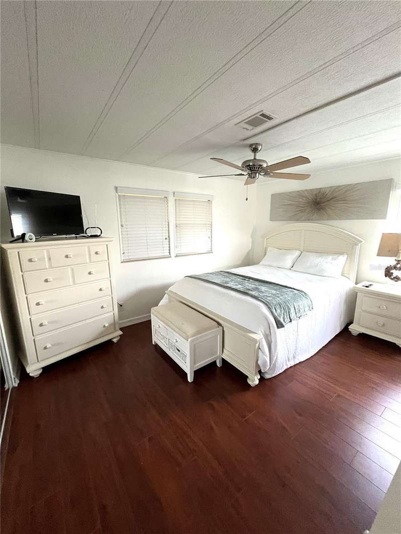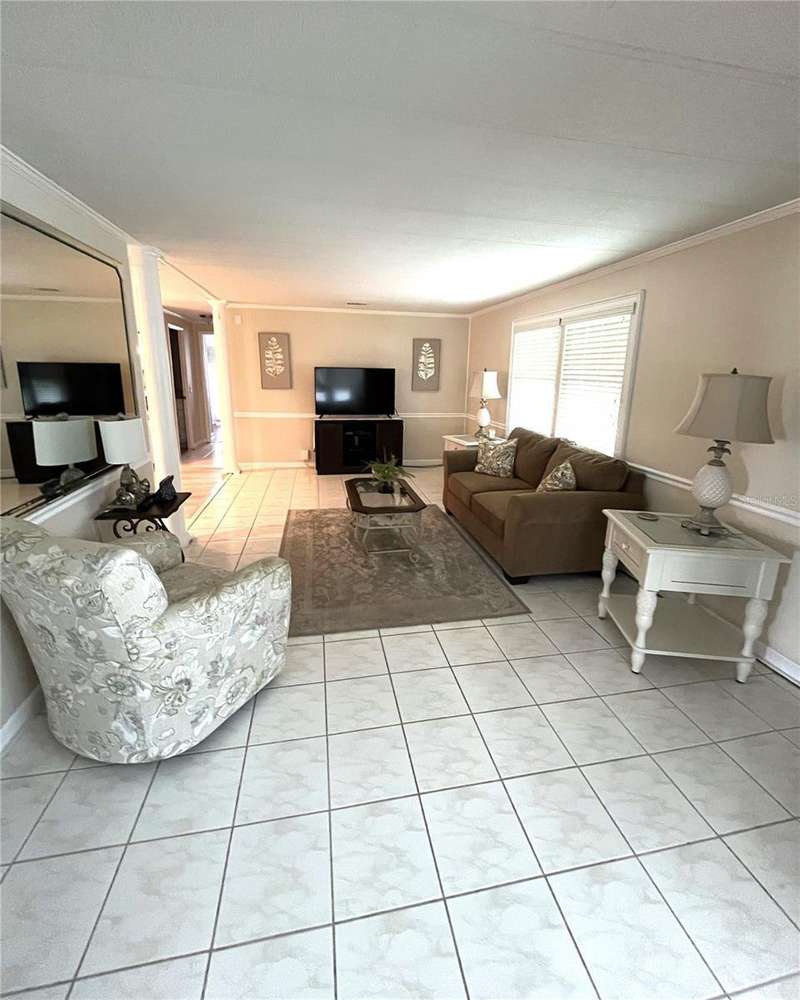 Nicely updated home in popular land owned Harbor Isles. Large ticket items including kitchen and both bathrooms have been updated. Open floor plan makes entertaining and casual living a breeze. Plenty of elbow room for visiting friends and family. Enjoy the large air conditioned Florida room, great for football parties, preparing libations, games, hobbies and more. The laundry area has direct access from the Florida room for privacy. No carpet, ceramic tile or laminate throughout. Both bedrooms have walk-in closets. The membrane roof was replaced in 2018, A/C 2022. This pet friendly, 55+ community boasts resort like amenities and activities that will keep you busy year round. Convenient to beaches, shopping, dining, Atlanta Braves ball field, downtown Wellen Park, interstate and airports. Call today for your private viewing.