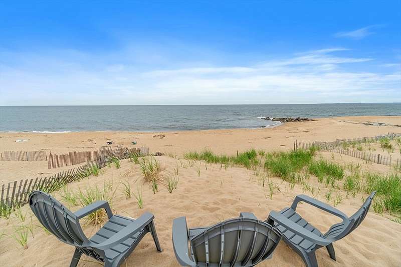 Oceanfront with a fireplace on Plum Island! Plus the local restaurants and businesses remain OPEN all year round. This home offers stunning views from generous windows that create a feeling that only living on the ocean can give you. The waves are a show on their own! A modern open design, newer furnishings and appliances, a soaring ceiling in the living room with a two story working stone fireplace. This house is being offered fully furnished from Nov - April. Ideally for 2-4 people, the monthly rent includes all utilities except oil. Enter at ground level, the mostly finished bunk room to the L and stairs to main level. On main lv you’ll find an open Living room, Fireplace, Kitchen/dining, a King bedroom, Laundry room and full bathroom. Next level up is the Main King Bedroom with private top deck access, large full bathroom with soaker tub and oversized rain shower and the Great room with door to upper deck and halfwall overlooking lower living room.
