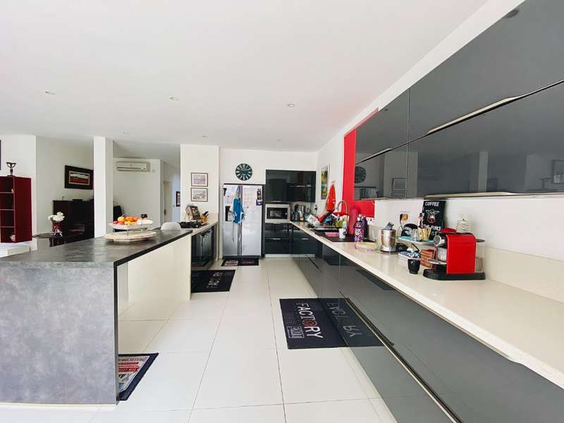 Stunning 5 bedroom villa on three floors including a covered rooftop terrace with a overflowing pool. Facing the mountain and the marina, this spacious villa is perfectly placed in the marina with its own mooring right in front. It is also close to all amenities located on the west coast of the island.