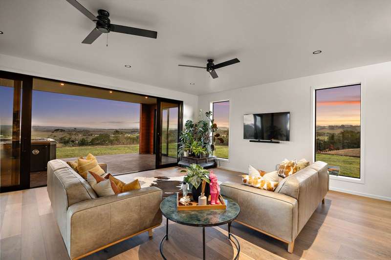 Perched upon an elevated 19.7-hectare estate, this exquisite residence is a testament to refined country living. Thoughtfully crafted with contemporary elegance, this near-new 430m² brick and cedar home offers a seamless blend of luxury and tranquility, where breathtaking panoramas stretch as far as the eye can see. At its heart, the expansive open-plan living area is designed for effortless connection. A state-of-the-art chef’s kitchen, complete with a butler’s pantry, granite benchtops, and generous storage, is a space where culinary artistry and practicality unite. Flowing naturally into the dining and lounge areas, this central hub extends to a covered alfresco retreat - an idyllic setting to savour the sweeping rural vistas. A wood-burning fireplace provides warmth and ambience in the main lounge, while a second living area offers the versatility of a media room or a refined formal space. The home’s five beautifully appointed bedrooms include a serene master suite, a private sanctuary featuring a walk-in wardrobe, heat pump, and a luxurious ensuite with a wet-room design, his-and-her vanities, a freestanding bath embracing the landscape beyond, underfloor heating, and discreet ventilation. A well designed family bathroom, additional WC, and a third combined bathroom ensure ease and comfort for larger or multi-generational living. Practicality meets sophistication with an office nook, a spacious separate laundry, attic storage, and a double garage with internal access, all designed with thoughtful intent. For those with a love of the outdoors, the property offers an enviable lifestyle. Ten well-fenced, troughed paddocks provide ample space for horses or livestock, complemented by a 90m² shed and bore water supply. As part of Tupare Estate, shared arena and stables cater to equestrian pursuits, while children will delight in the open spaces, fresh air, and the freedom to roam in a safe and inspiring environment. Sustainable living is embraced with 16 solar panels, and water security is assured with three large tanks (27,000L x2, 25,000L x1). The property also grants access to the communal amenities of Tupare, including a tennis court, boat ramp, and community recreation centre, fostering a strong sense of connection within this sought-after enclave. Surrounded by natural beauty, adventure awaits at nearby Shelly Beach, Woodhill Forest, Te Rau Puriri Regional Park, Lake Rototoa, Muriwai Beach and the South Head Golf Course. This is more than a home; it is a rare and exquisite lifestyle opportunity. To experience its grace and grandeur firsthand, arrange your private viewing today.