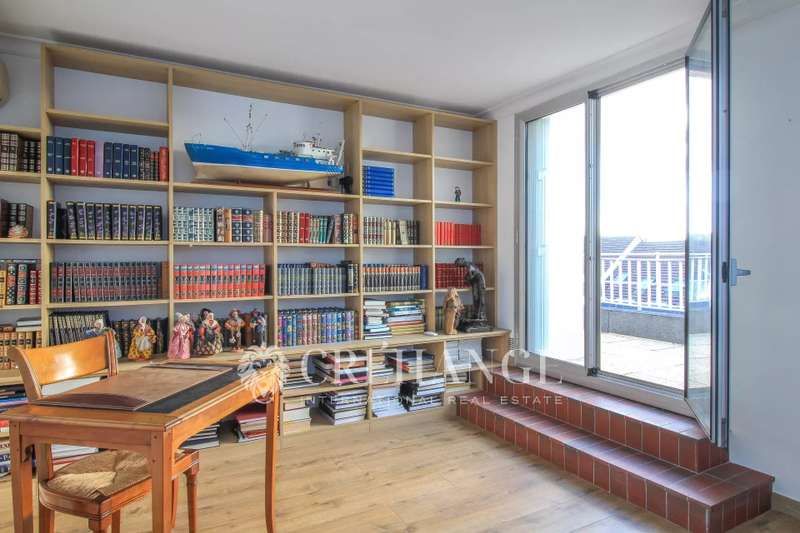 78300 POISSY - Located on the top floor of a residence with elevator, this spacious 141m² duplex apartment boasts generous volumes, plenty of natural light and a spacious exterior. It comprises On the first level, a vast entrance hall with a hallway leading to three bedrooms on one side, a living room with a fireplace opening onto a long balcony ideal for sunny days on the other, an independent, fully-equipped kitchen, a large bedroom with a private balcony and a bathroom with walk-in shower and toilet, as well as a separate toilet for guests. On the upper level, accessed by a wooden staircase, is a light-filled study/library with direct access to a south-facing terrace with unobstructed views, perfect for enjoying a moment of relaxation or admiring the sunsets. The apartment also features a double cellar with ample storage space and two private parking spaces in the basement. Just a 5-minute walk from all amenities (shops, schools, RER A train station and bus routes), with easy access to the A14/A13 motorways. Co-ownership of 109 lots, 25 of which are residential. No legal proceedings in progress. Information on the risks to which this property is exposed is available on the Géorisques website: www.georisques.gouv.fr.