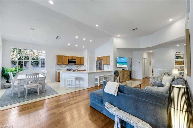 Welcome to 26914 Montego Pointe Ct. #202 a spectacular view awaits you! Nestled in the serene embrace of Bonita Springs, this exquisite lakefront residence is a true sanctuary amidst nature's finest artistry, where the gentle ripples of the water whisper tales of tranquility and promise. Stepping inside, you're greeted by new flooring that leads the way into a remodeled kitchen, showcasing pristine countertops and revitalized bathrooms, each space echoing elegance and modern sophistication. The enchantment continues with a glassed-in lanai, offering an uninterrupted canvas of the mesmerizing lake, a perfect setting for morning musings or evening reflections. Venture outdoors to discover the community's luxurious tapestry of amenities-tennis, pickleball, bocce, kayaking, canoeing, and walking trails that beckon the adventurous spirit. With playgrounds echoing children's laughter and a private beach club offering a slice of paradise, it's a haven for families and individuals alike. A golfer's dream with splendid courses and club dining, along with a full-service marina for those drawn to the water's call. Convenience is paramount as it resides near the vibrant pulse of Coconut Point Mall, The Promenade, RSW International Airport, thrilling theaters, and lively downtown Bonita Springs, presenting a delightful blend of tranquil retreat and city life excitement. The attached one-car garage provides practicality, while the neighborhood swimming pool, spa, fitness room, and pavilion extend an invite to relax and rejuvenate. A testament to graceful living, this property is not merely a home; it's a lifestyle poised between the quietude of nature and the vibrant hum of community life.